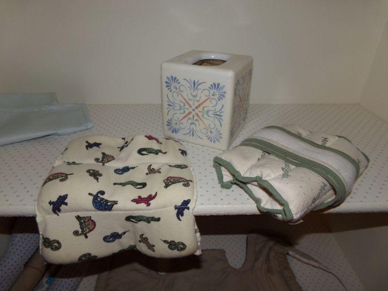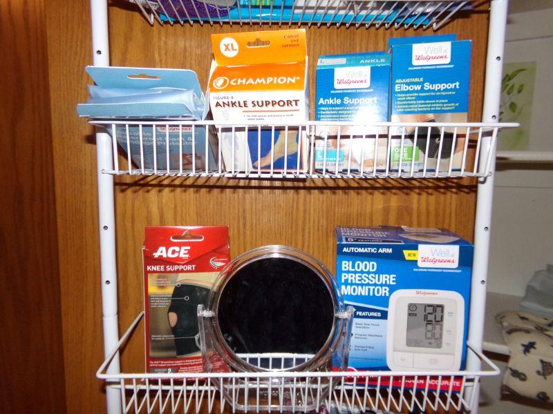WICKER HAMPER, BLOOD PRESSURE MONITOR, NEOPRENE BRACES, HEATING PAD, MIRROR, SHOE LACES AND MUCH MORE!