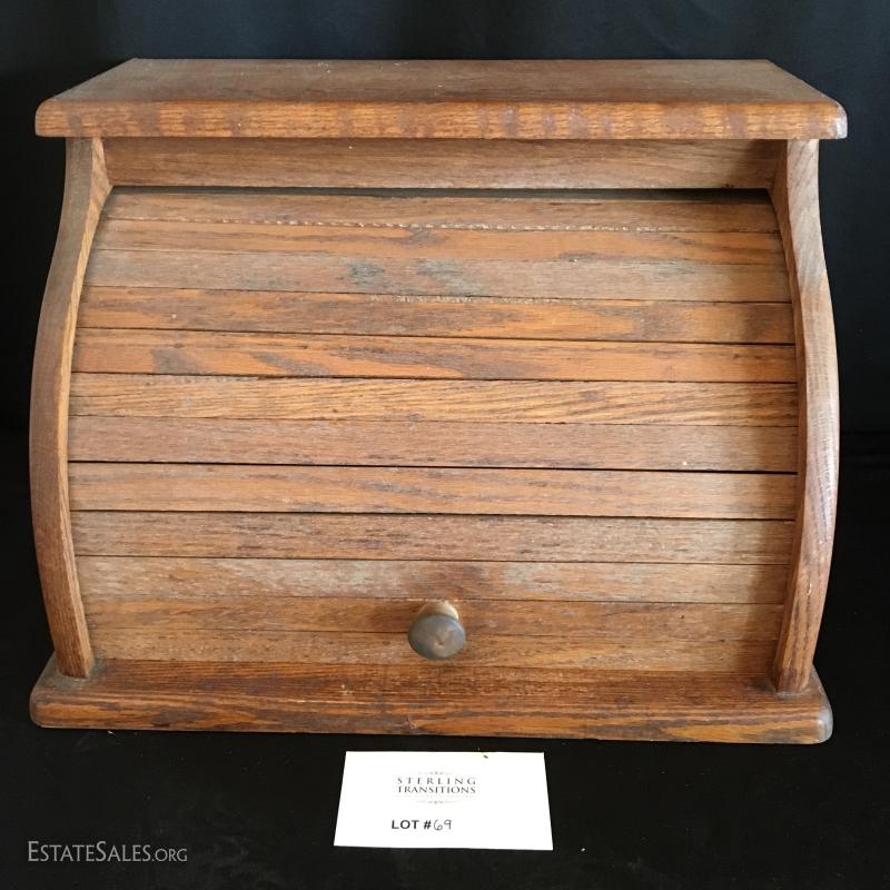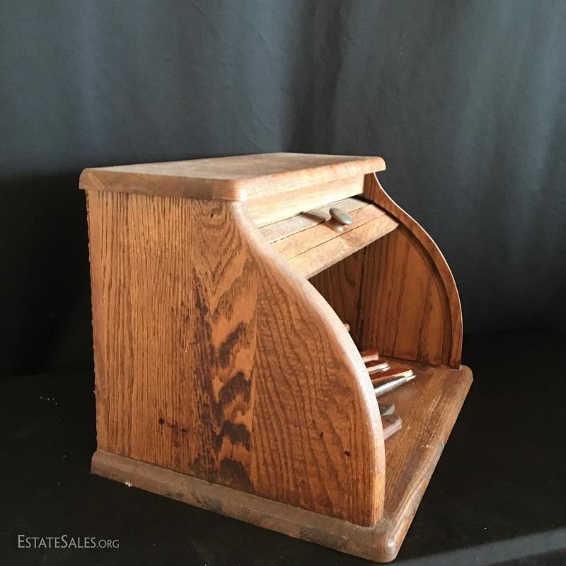 Wood Bread Storage Box with Roll Top Sliding Lid, Knife Block with