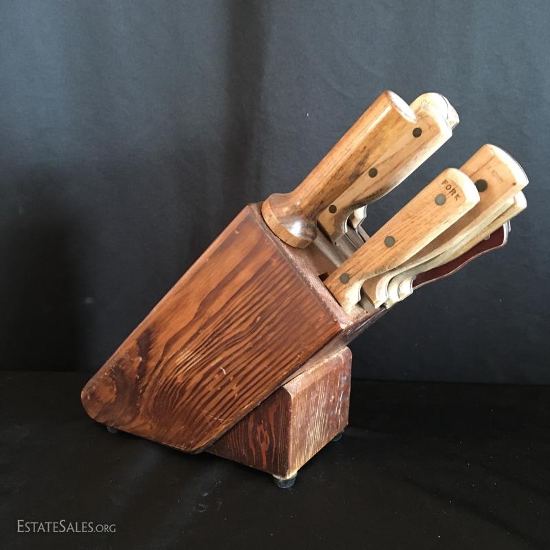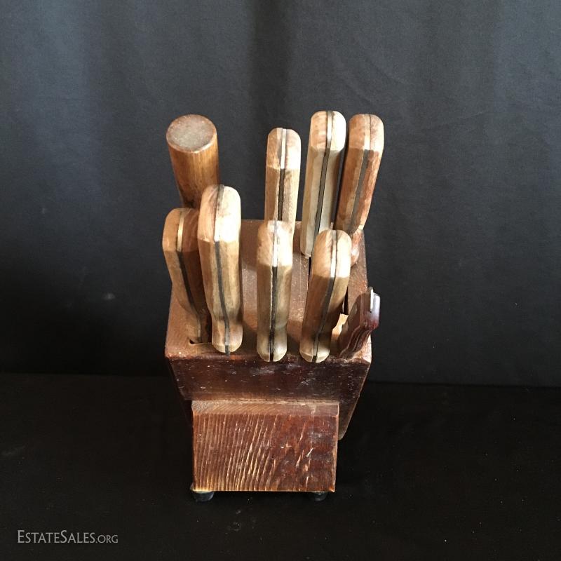 Robinson Masher, Wood Handle Ice Pick, Two Wood Handle Cheese Slicers, Six Wood Handle misc. Serving Pieces.