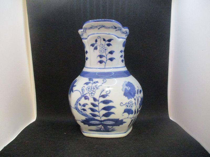This vase is in great shape with no issues found. It is 8" tall at the highest point.