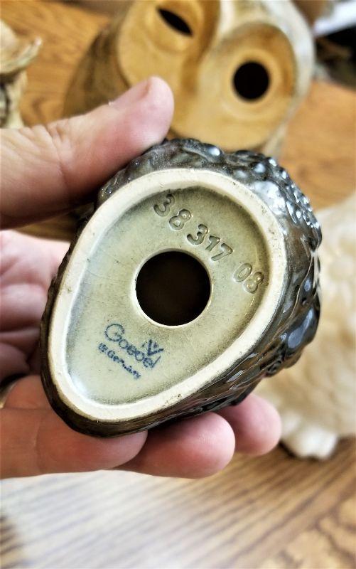 More cute hoot owls from this lady's collection - the smaller one is a Goebel. For scale, tallest is 6.5" tall, smallest 3.5". Good condition.