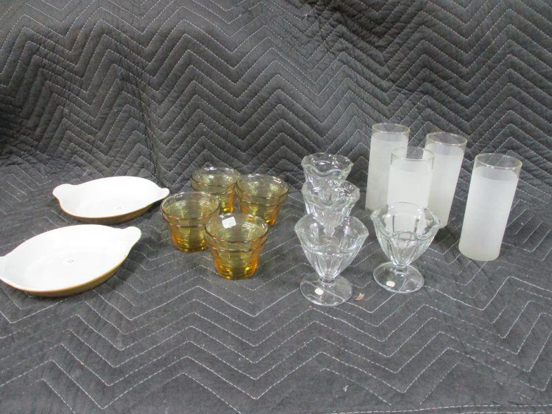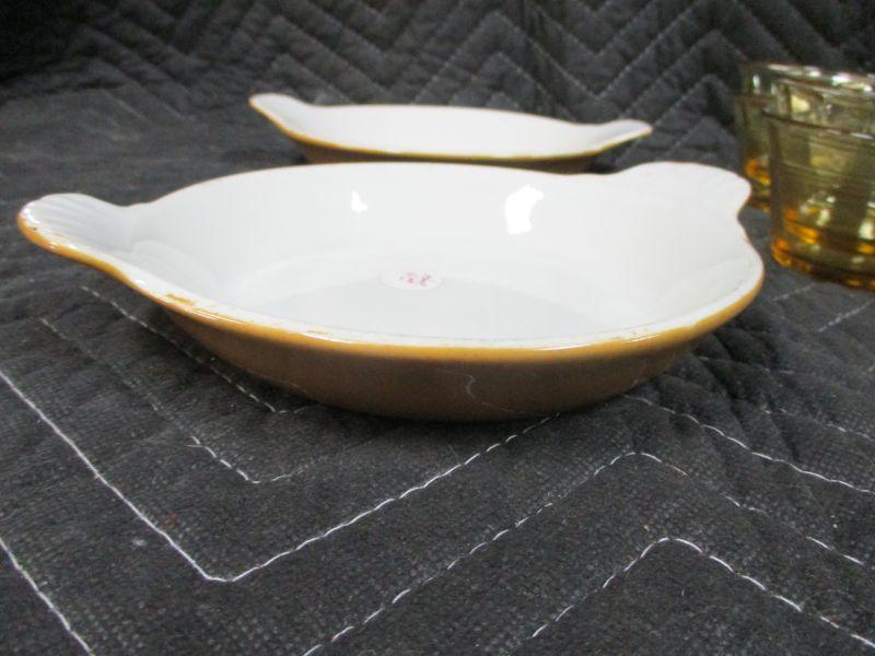 Frosted Glass & Hall Shallow White Custard Dishes