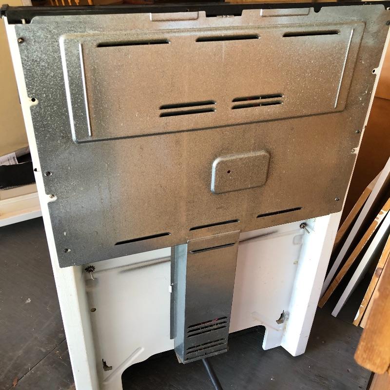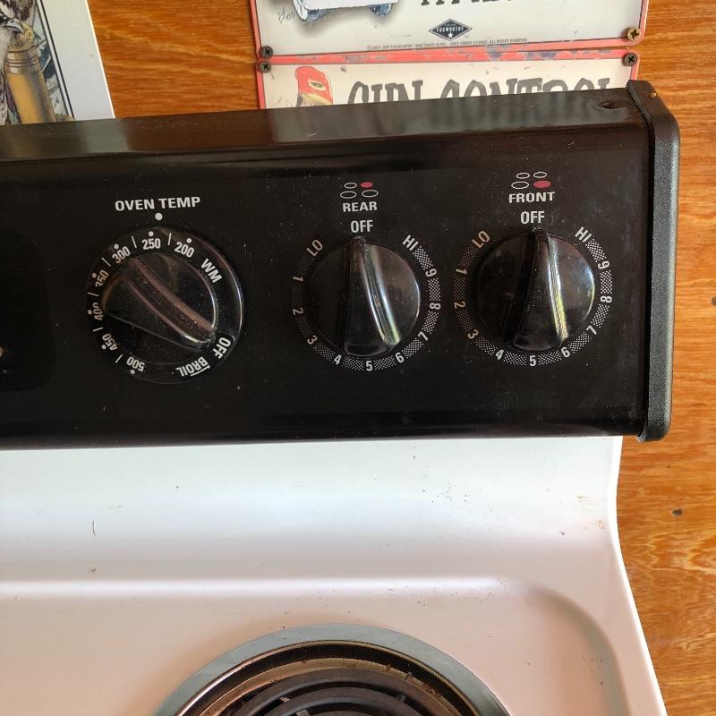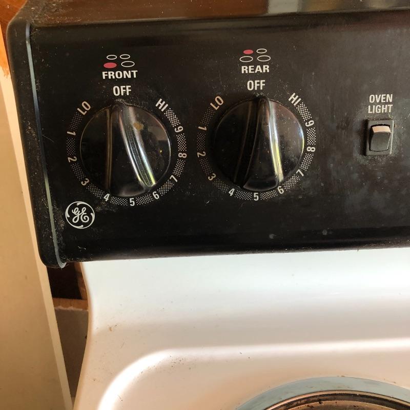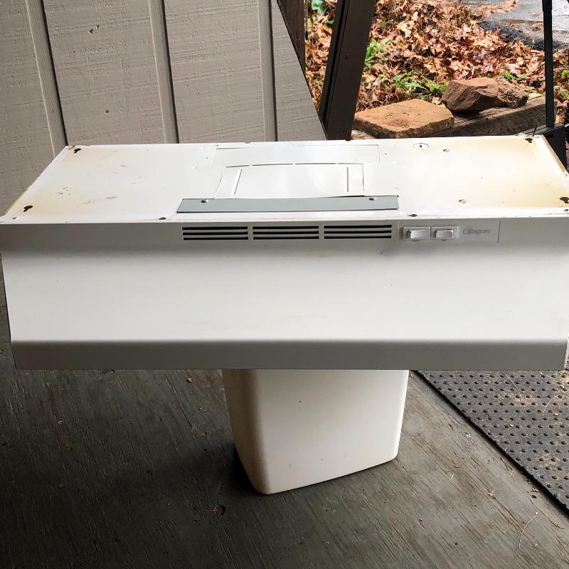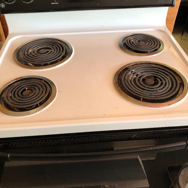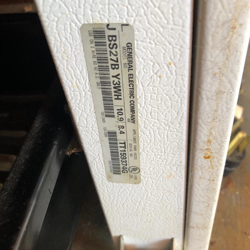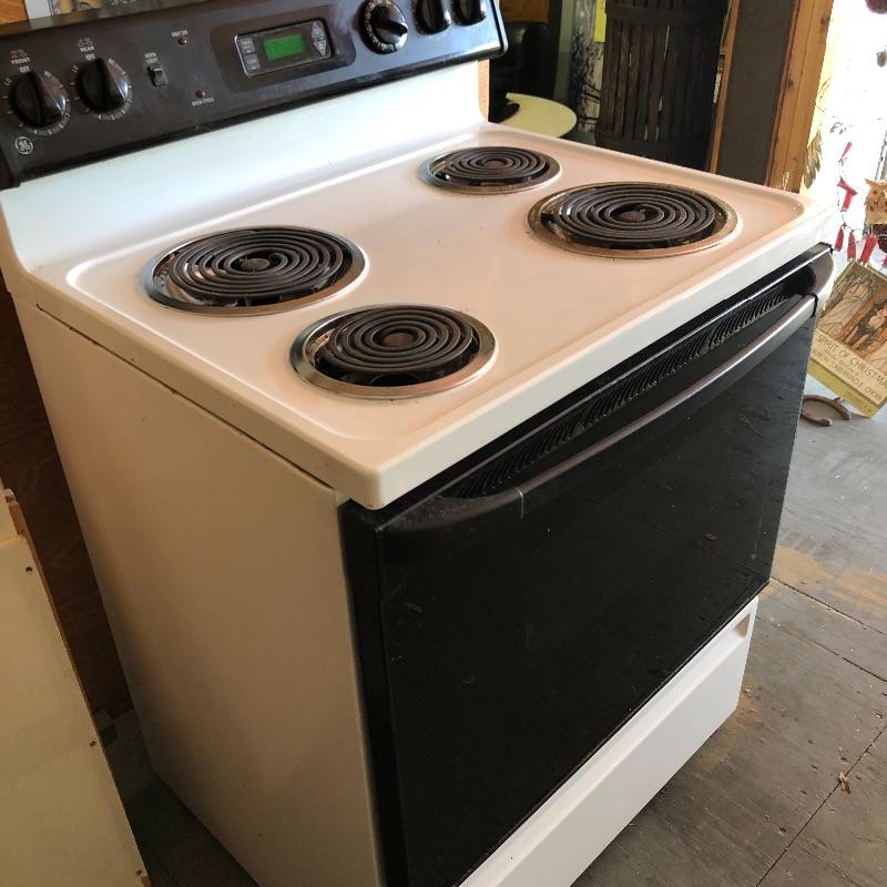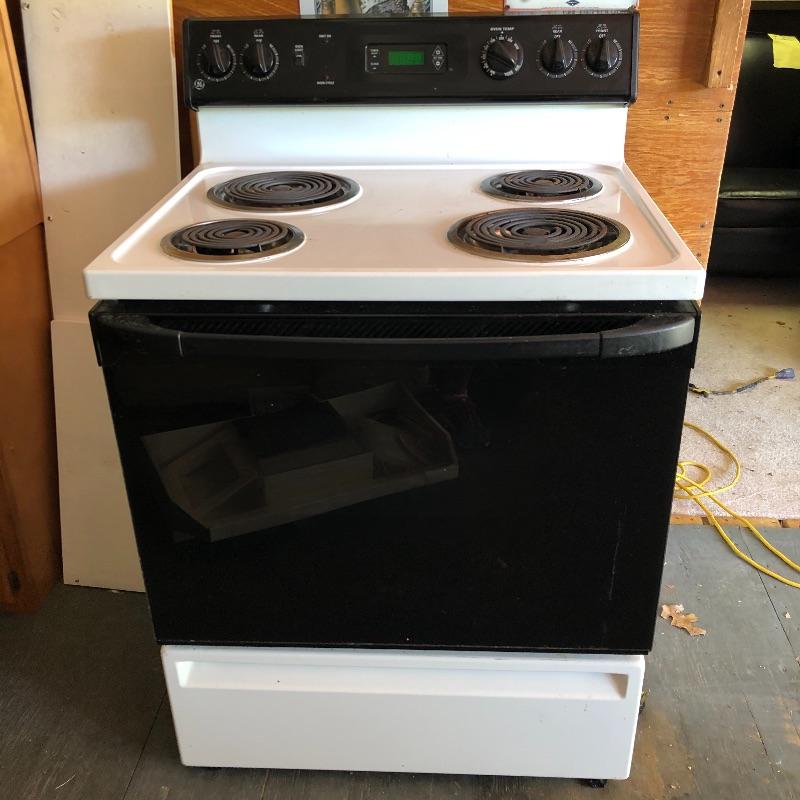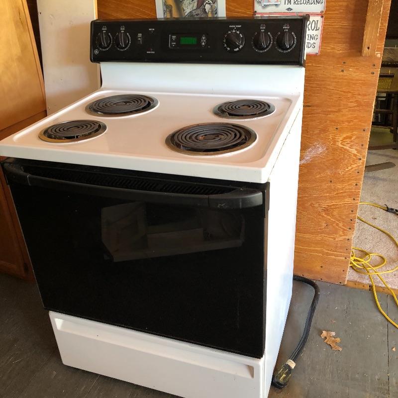 Dimensions of stove: 29.5” x 26.5” x 45.5”. Unable to plug in; owner states stove is operable. Stove is in good condition however it needs cleaning. Hood has fan & light. Dimensions: 29.5” x 17.5”