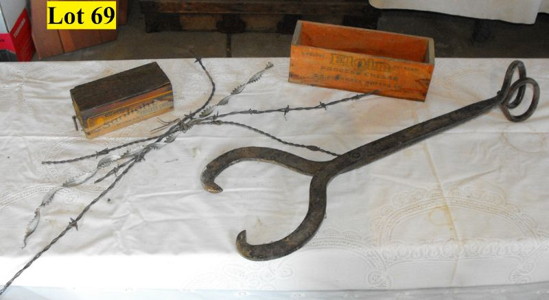 Hand Tools/Hardware/Ice Tongs/Galvanized Bucket and Barbed Wire