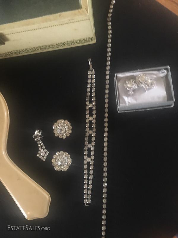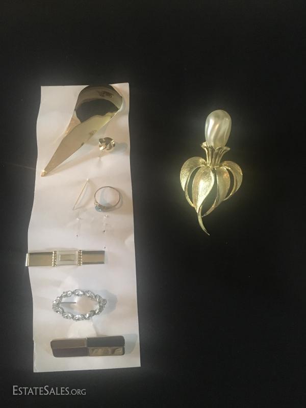 One silver cuff appears to be sterling. The rest of the jewelry is costume.