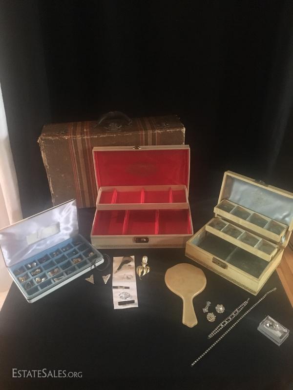 Lot 69 - Jewelry with Jewelry boxes and Vintage Suitcase