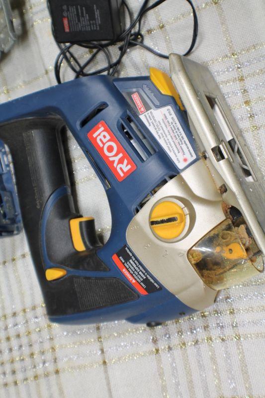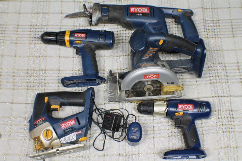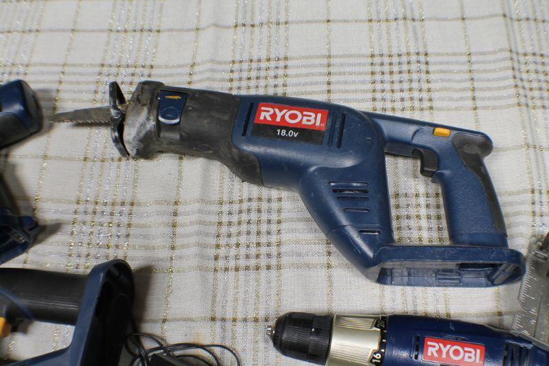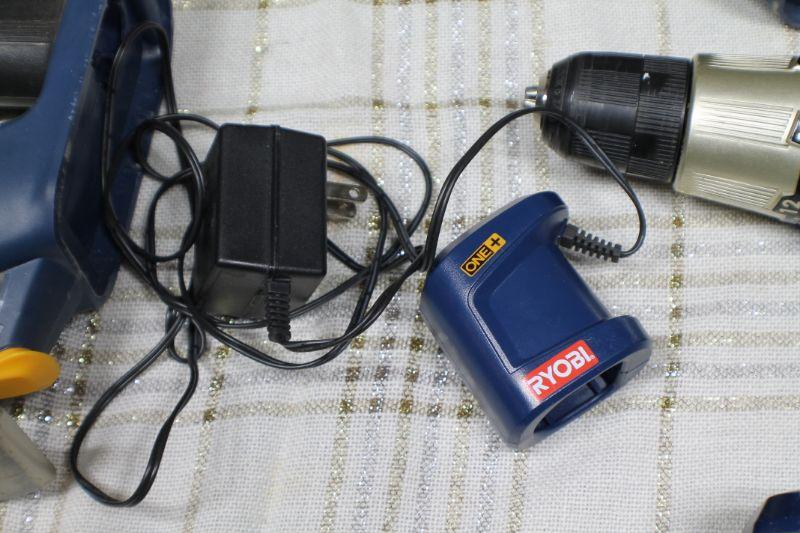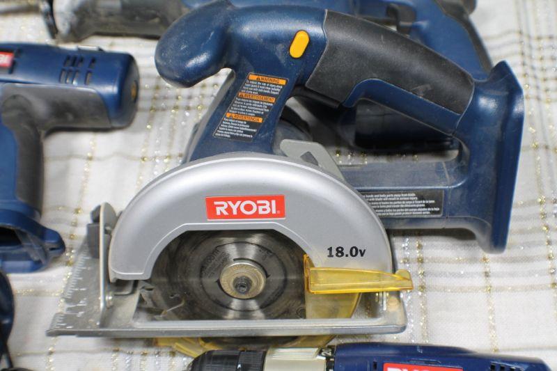 Lot 69: Large Collection of 18 Volt Ryobiâ„¢ One+ Cordless Tools w/ Charger and Battery (tested A+ w/ Slight Damage Shown)