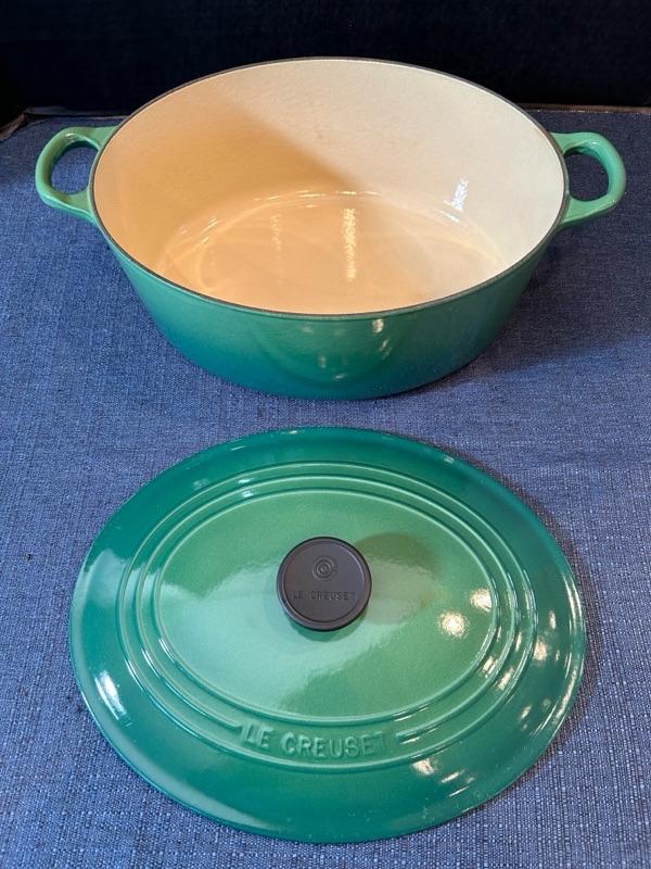 Le Creuset green oval Dutch oven #31 enameled cast iron