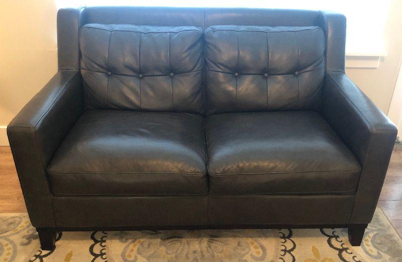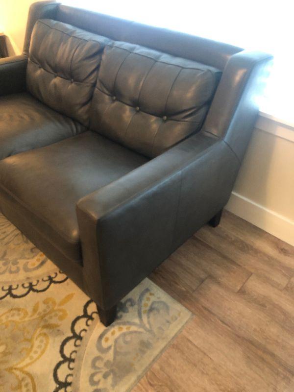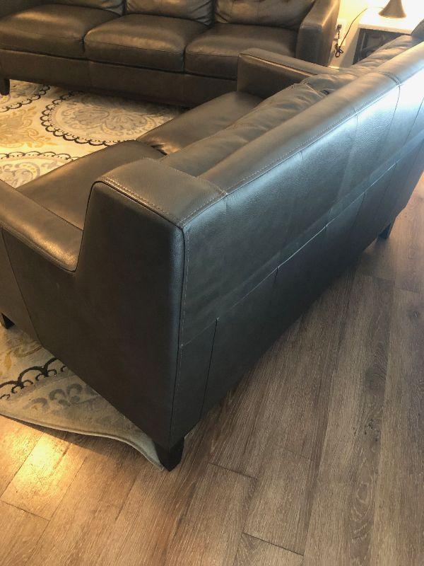 Lot #69 Leather Charcoal Love Seat Attached Cushion