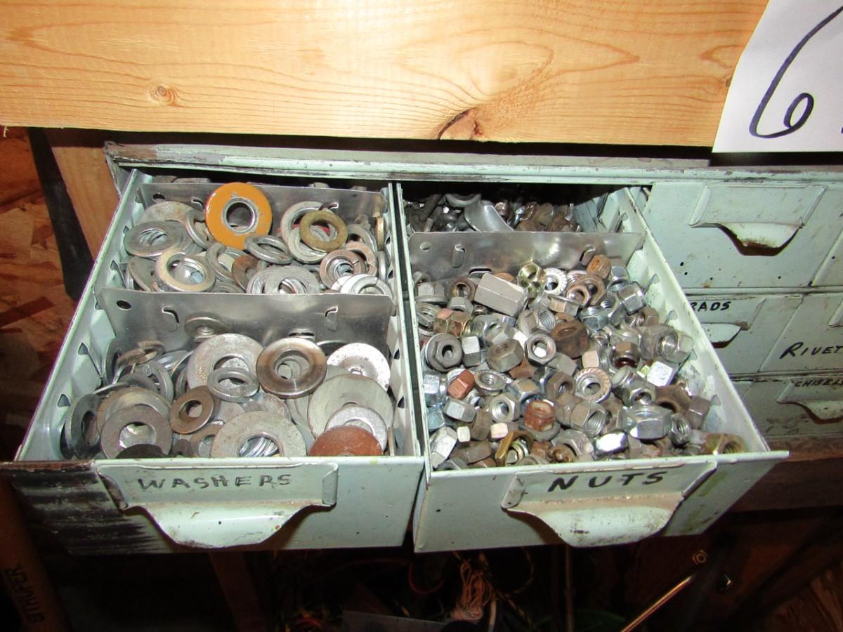 METAL ORGANIZER WITH 18 DRAWERS ALL FULL OF HARDWARE