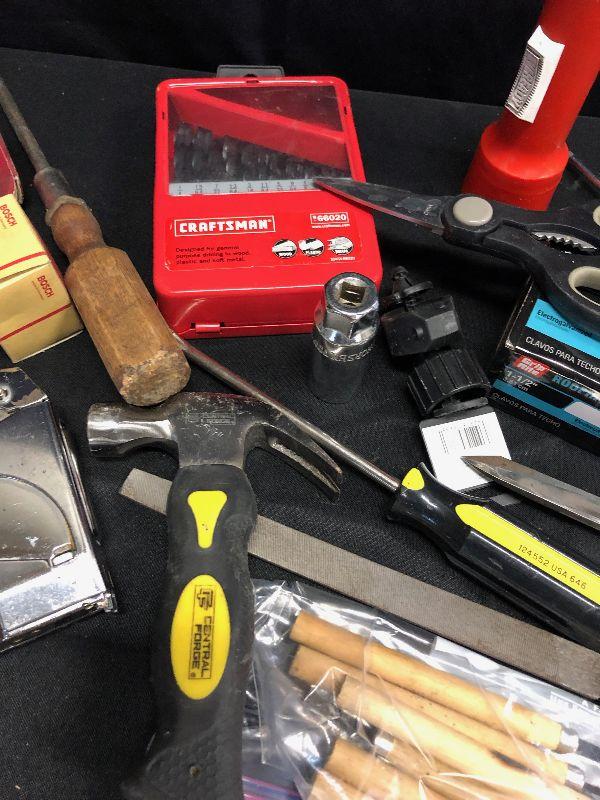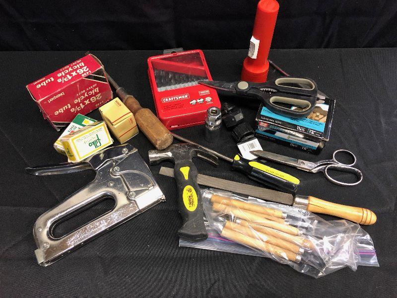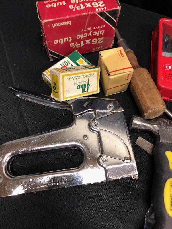 Lot 69 Misc. Tools with staple gun and craftsman drill bits