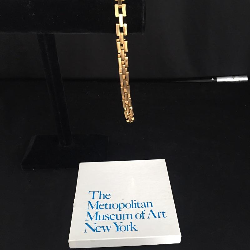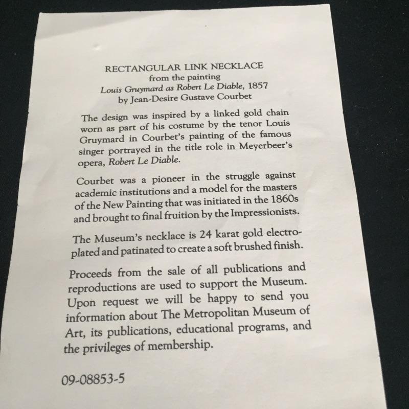 Bold Museum of Modern Art 24 karat gold electroplated necklace. Comes in original box. Treat yourself or your significant other to these beauty. Necklace measures 19” long. Shipping Available
