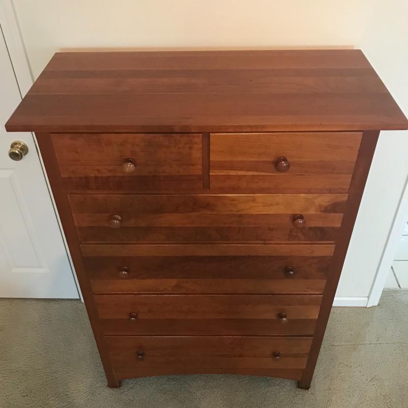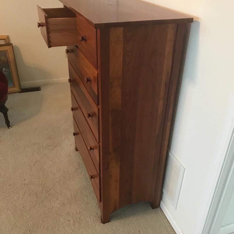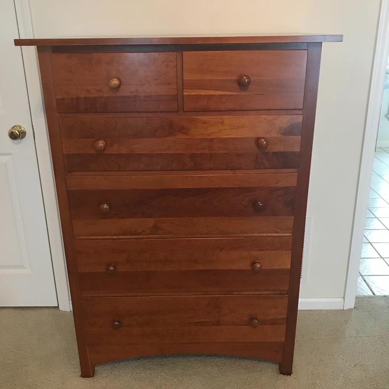 6 Drawer Pennsylvania House cherry stained tall chest of drawers. Item measures 38” x18” x52”. It matches the dresser in lot 68 and bedside tables in lot 70. This lot is available for local pick up in Asheville, NC only.