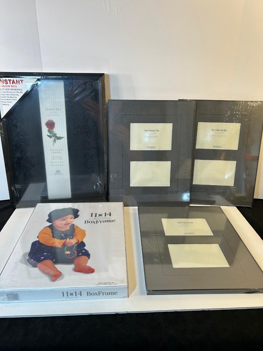 Includes 12” x 16” shadow box, 11” x 14” plastic box frame and 3 11” x 14” photo frame with mat that fits 2 4” x 6”.