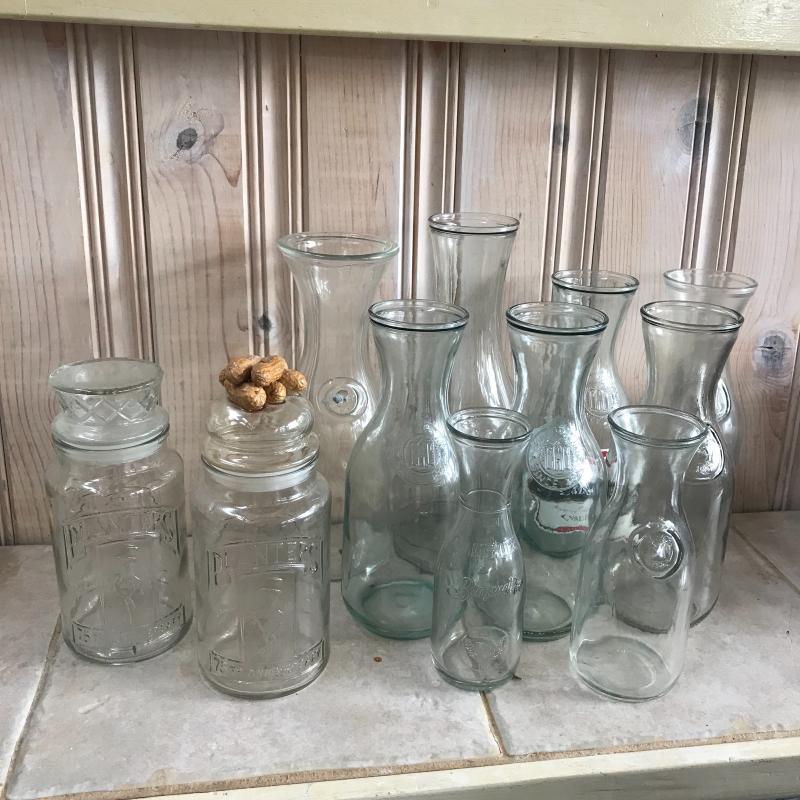 Planters Peanut Jars from 75th Anniversary and Paul Mason wine Jars and Braswell’s .25 liter jar. 8 total Paul Masons with largest standing 12”. Local pick up only.