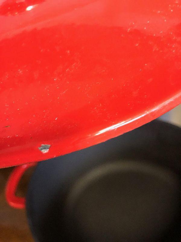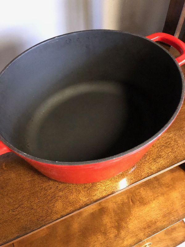 Lot # 69 RED Sur La Table Cast Iron 8 qt Oval Dutch oven