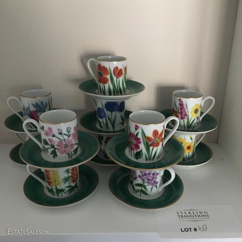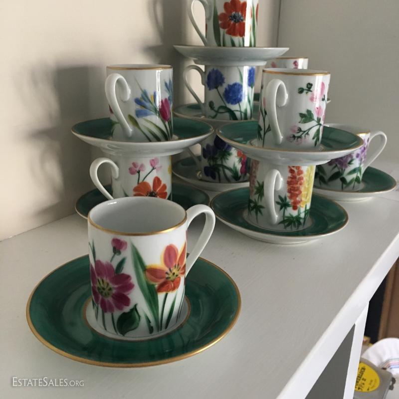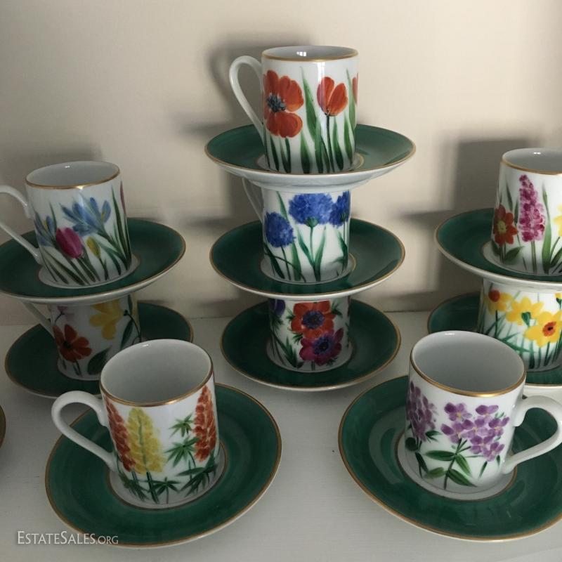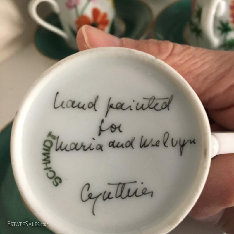 Set of 11, Schmidt, hand painted Espresso cups & saucers. Different Floral Designs.