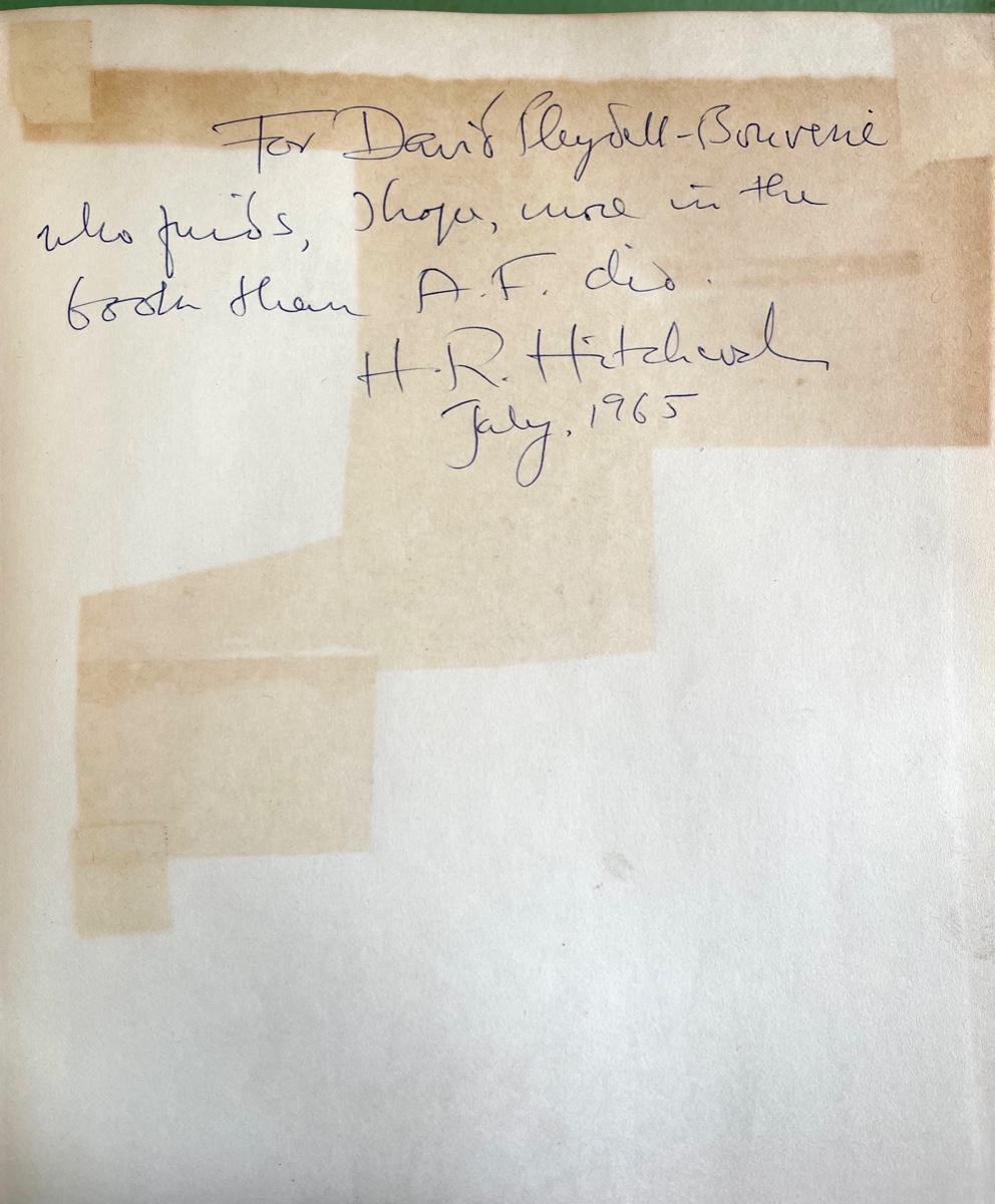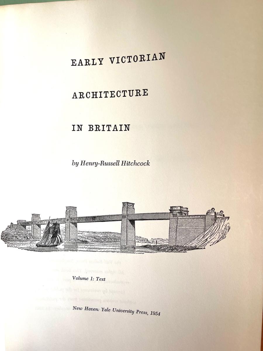 LOT 69 - Early Victorian Architecture in Britain by Henry-Russell Hitchcock published in 1954, Volume 1: Text. Signed by author to David with a personal inscription from 1965. Includes a taped newspaper article to inside cover page. This book was part of the David-Pleydell-Bouverie library at Bouverie Ranch in Glen Ellen. This item can be viewed at our Green + Cate Showroom in Sebastopol from July 15th - July 18th between the hours of 9am-5pm. For the benefit of the Bouverie Preserve of Audubon Canyon Ranch.
