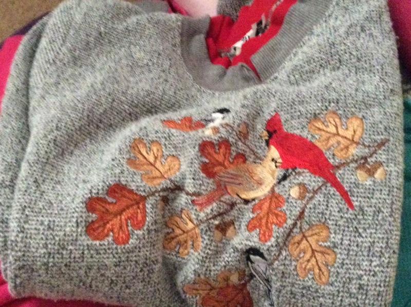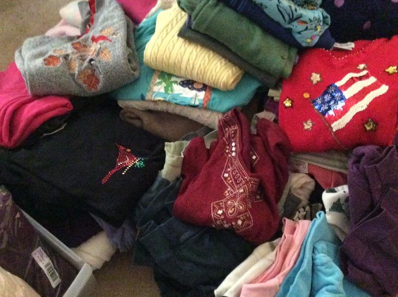 Holiday and nature inspired cold weather fashions. Women’s sizes small and medium, all like new. Bring large bags for packing.
