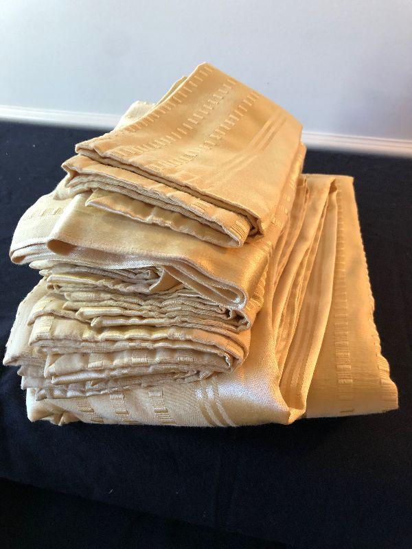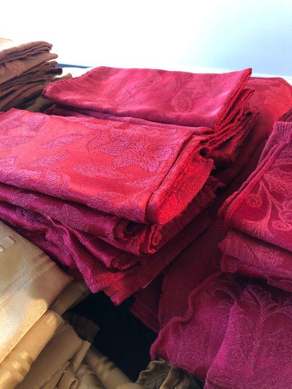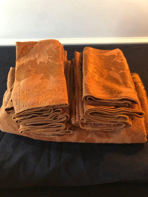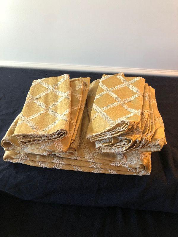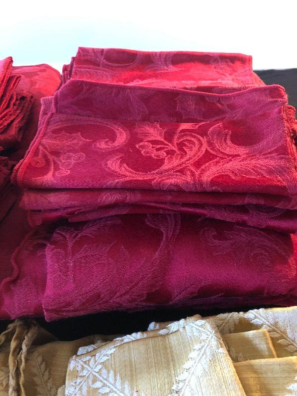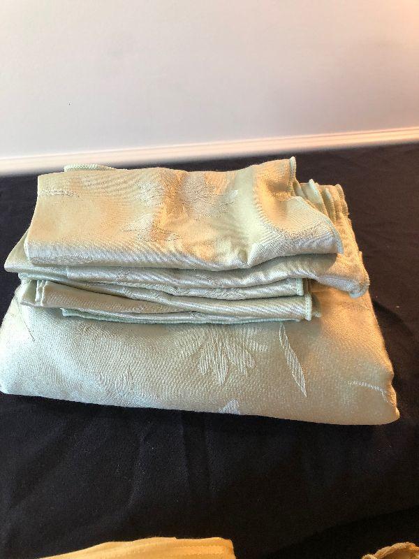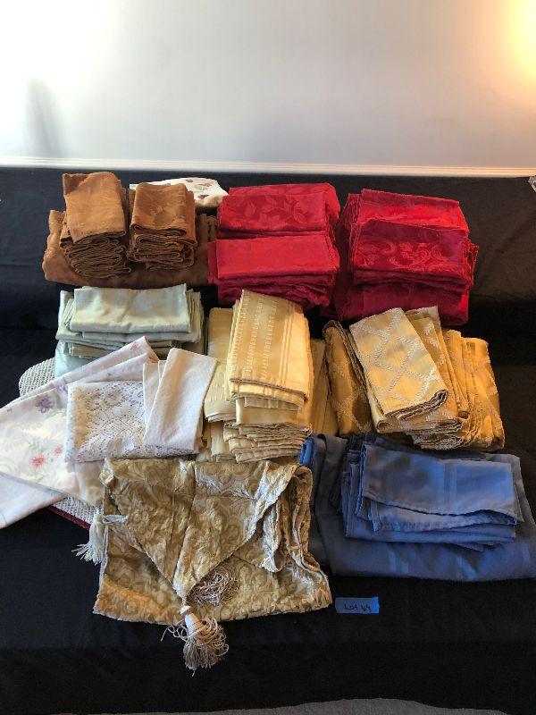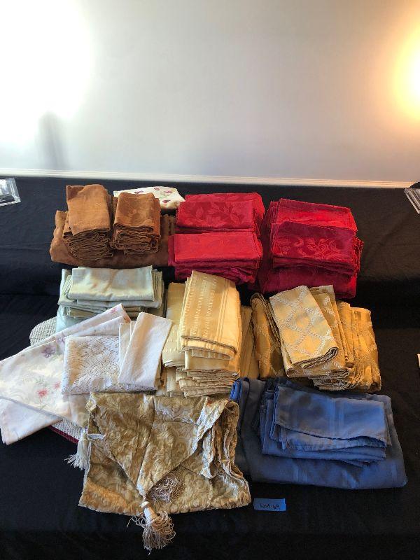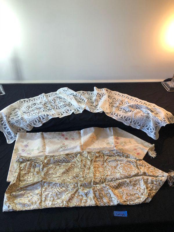 Table Linens including Oval Tablecloths w/Matching Napkins, Place Mats, Table Runners and Chandelier Chain Cover.