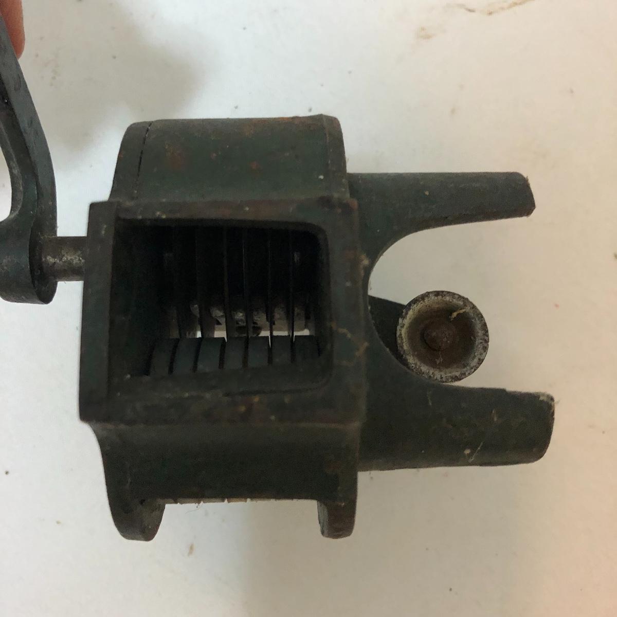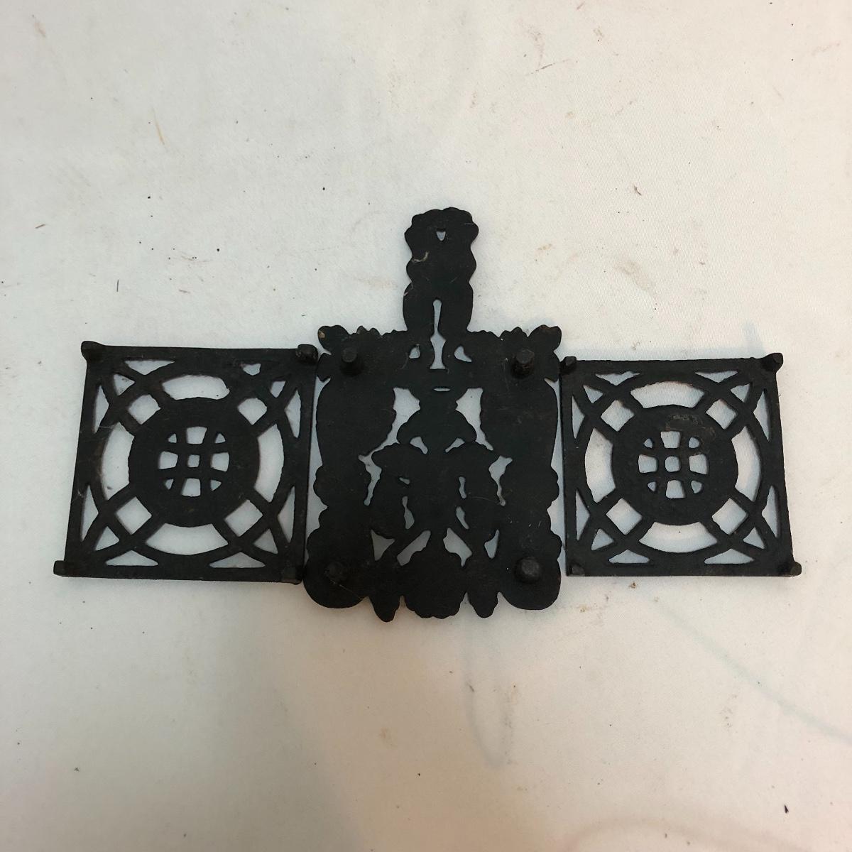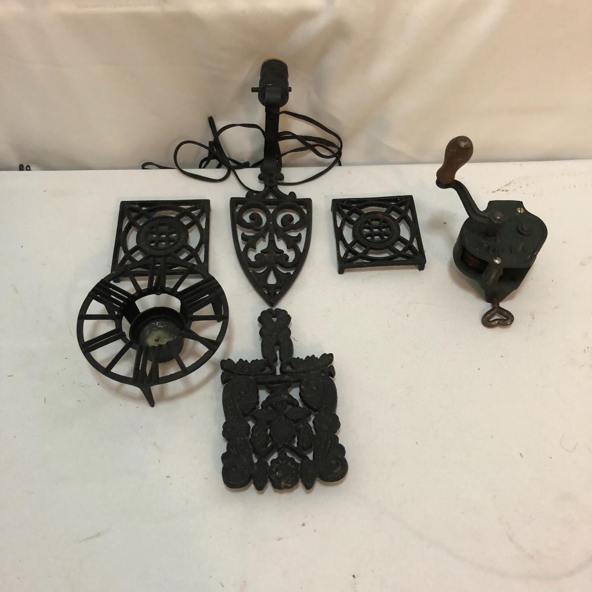 Get this vintage German Teck O green bean slicer just in time for green bean season. Lot also includes three wrought iron trivets, candle holder and wall mount light. Light worked when tested and measures 4” x 5.5” x 10🔔