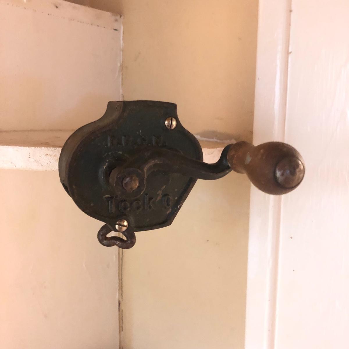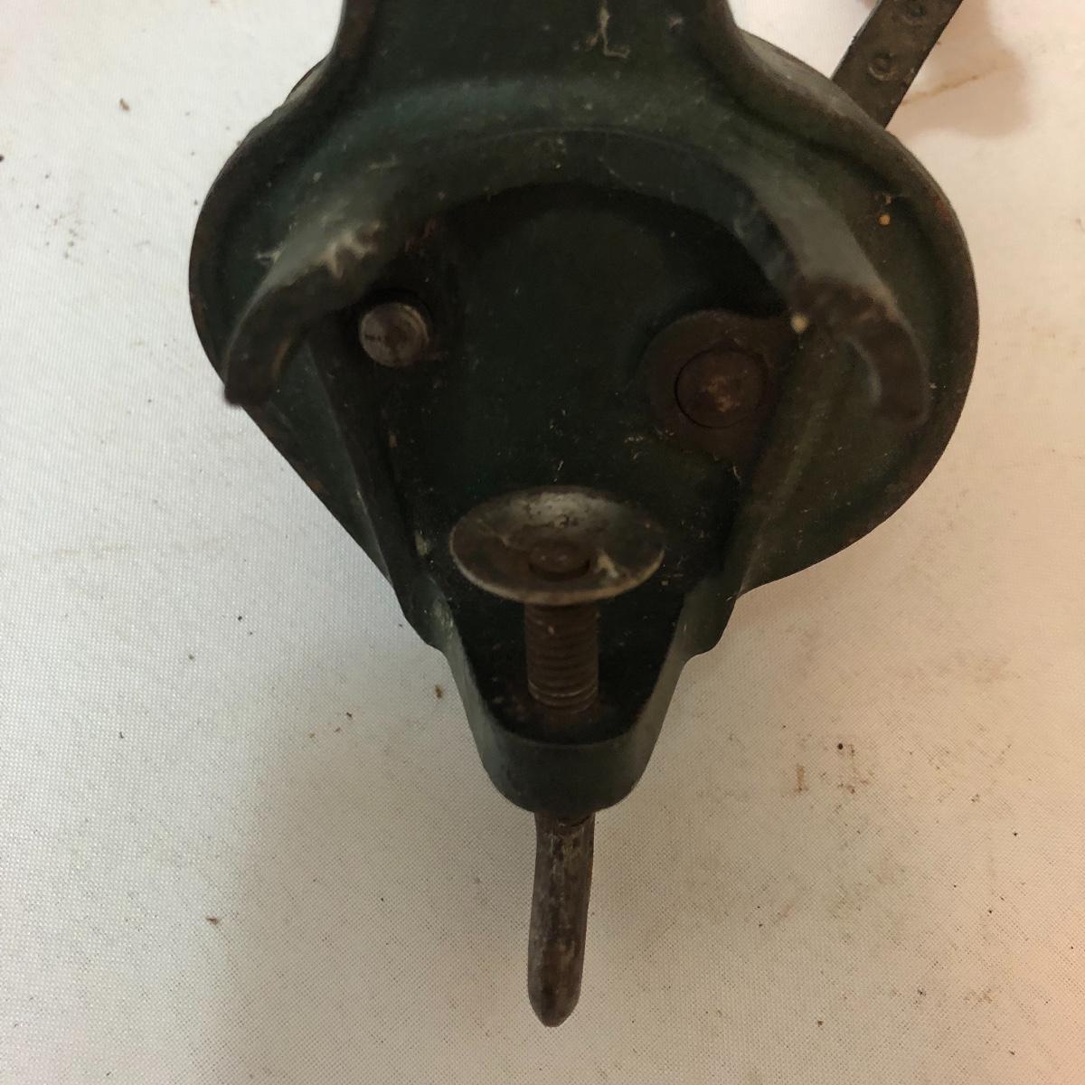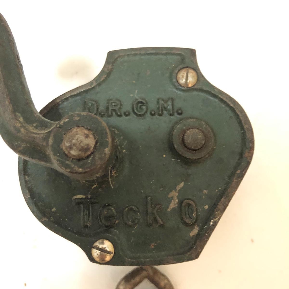 Get this vintage German Teck O green bean slicer just in time for green bean season. Lot also includes three wrought iron trivets, candle holder and wall mount light. Light worked when tested and measures 4” x 5.5” x 10🔔