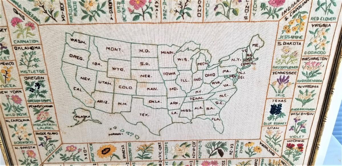 Lot #69 Vintage Embroidery - Map of the U.S.