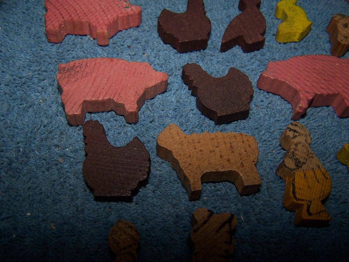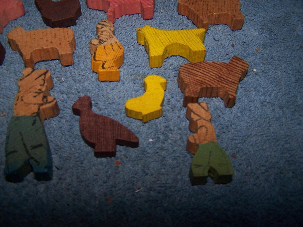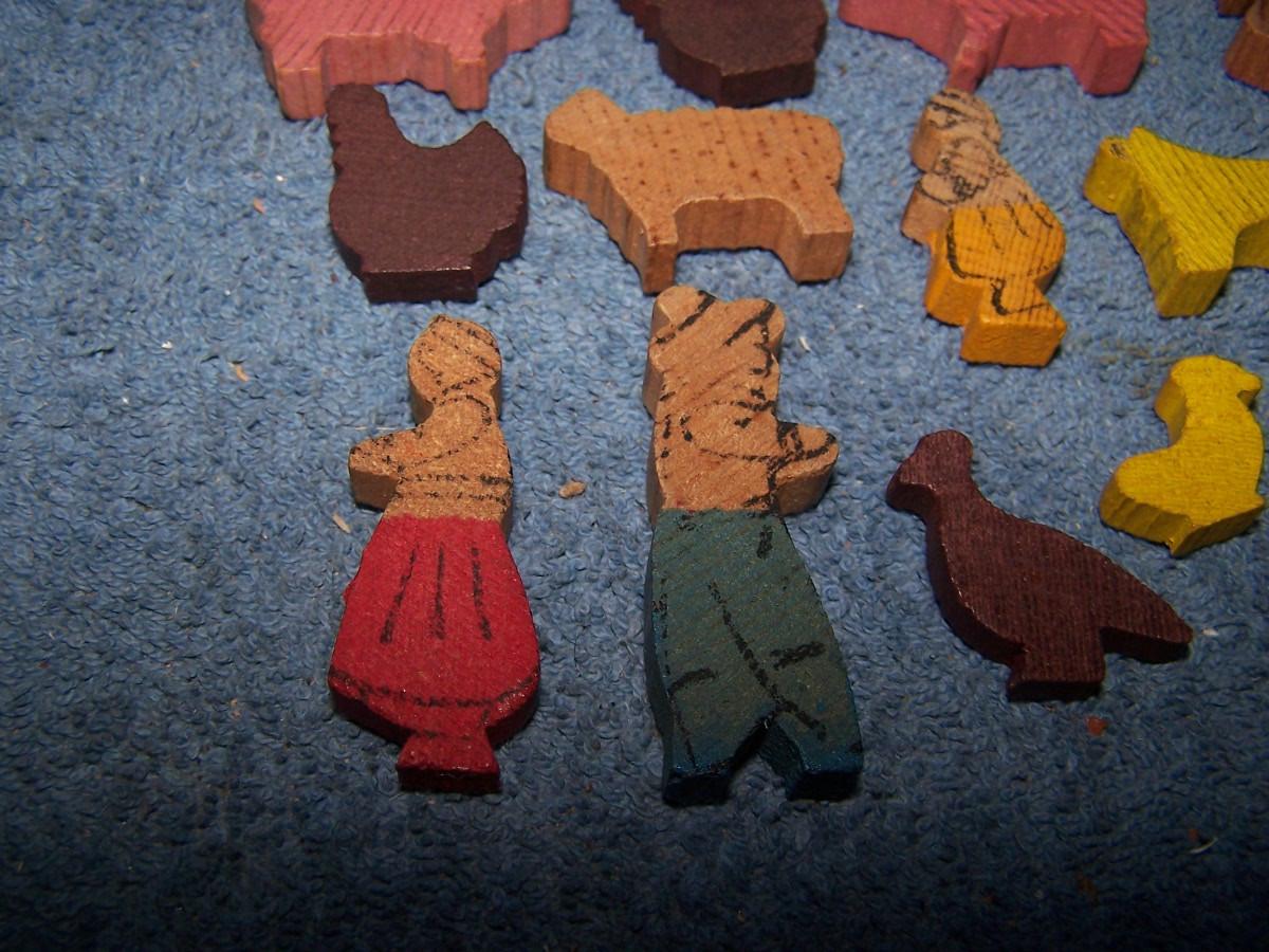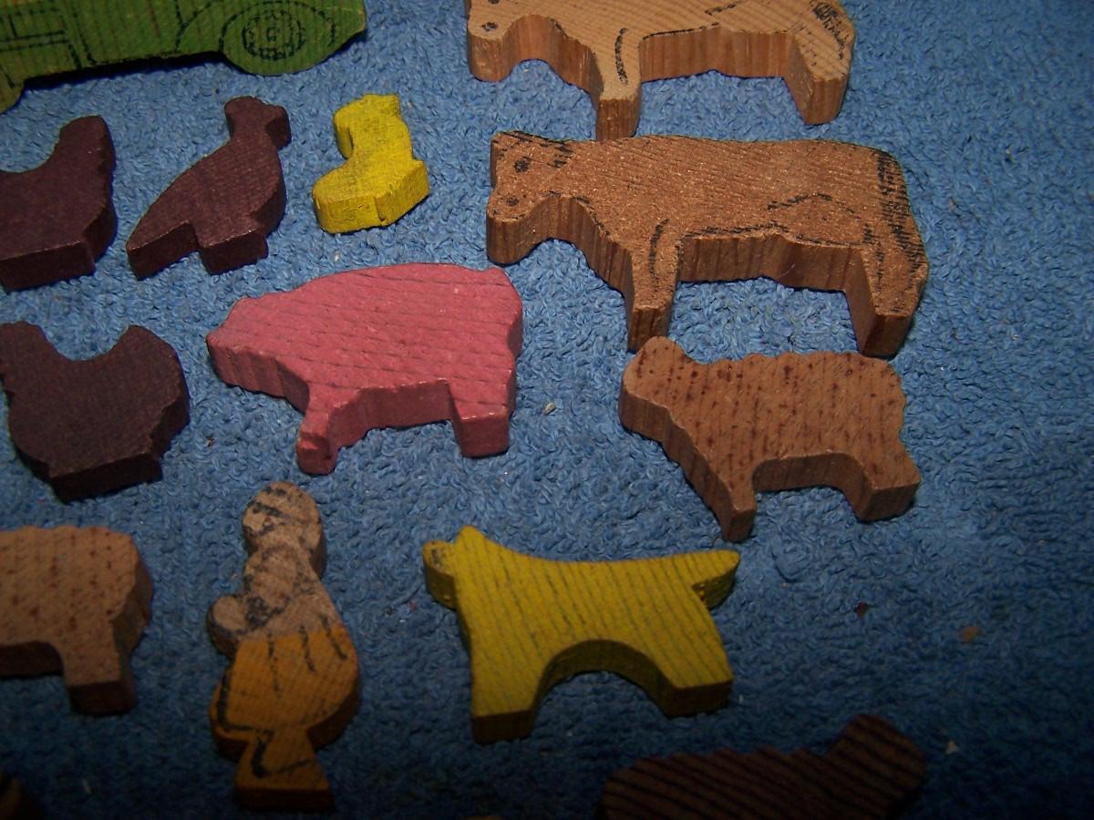 THESE ARE WONDERFUL VINTAGE MINI WOODEN FARM FIGURES!!! UNMARKED.. TRUCK-- 1 1/4'' X 3 1/4''.. LIGHT WEAR..