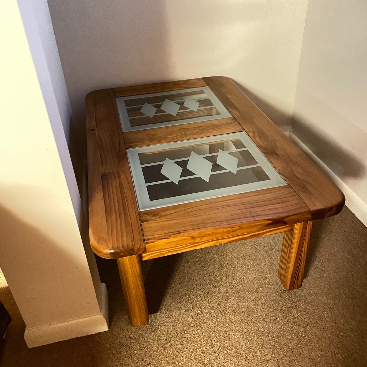 Lot 69 - Wooden Coffee Table w/ MCM Glass