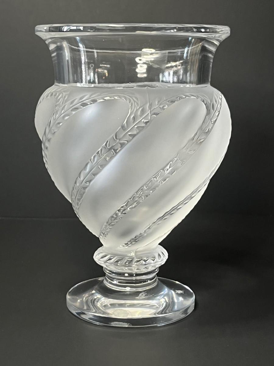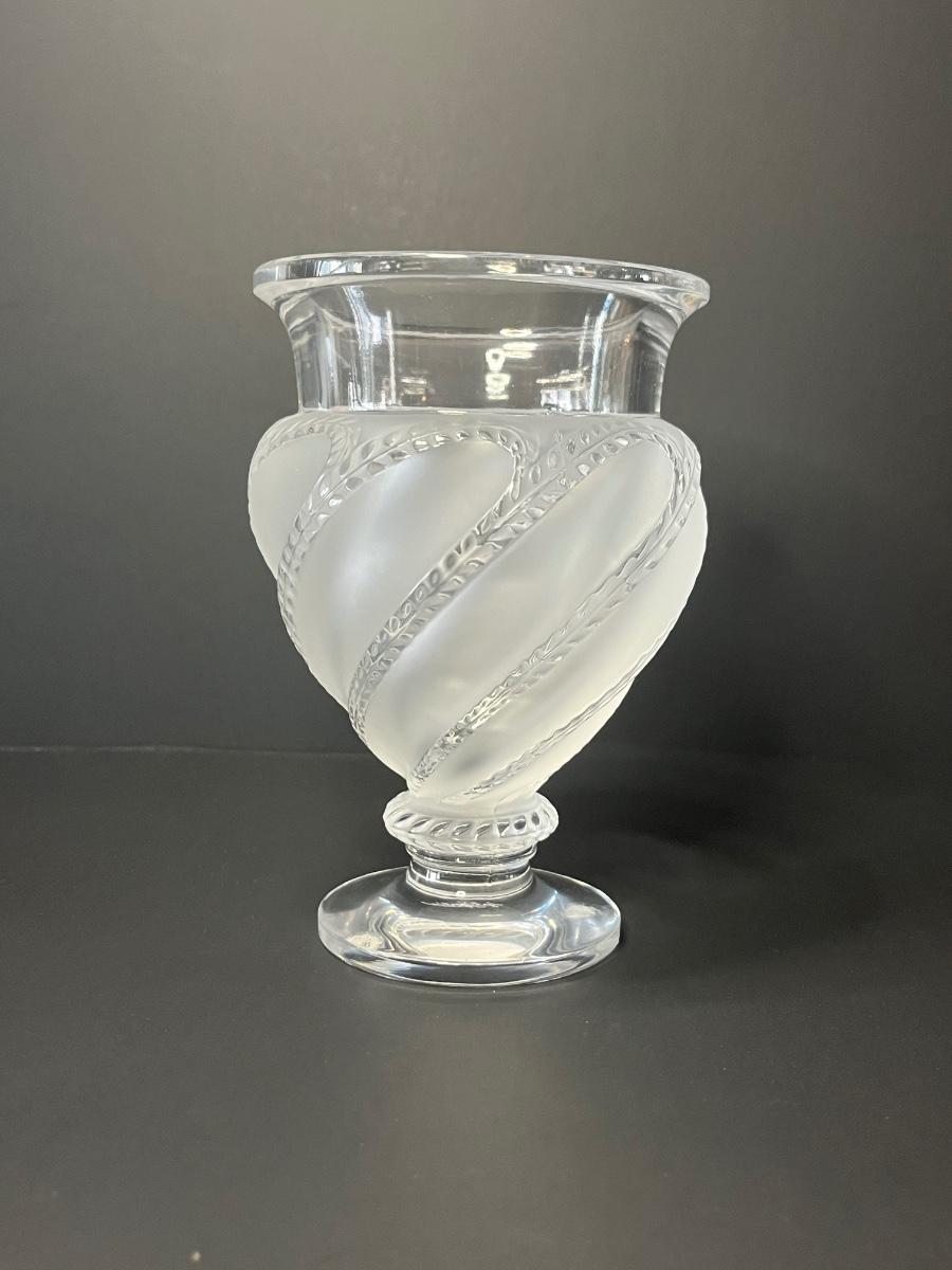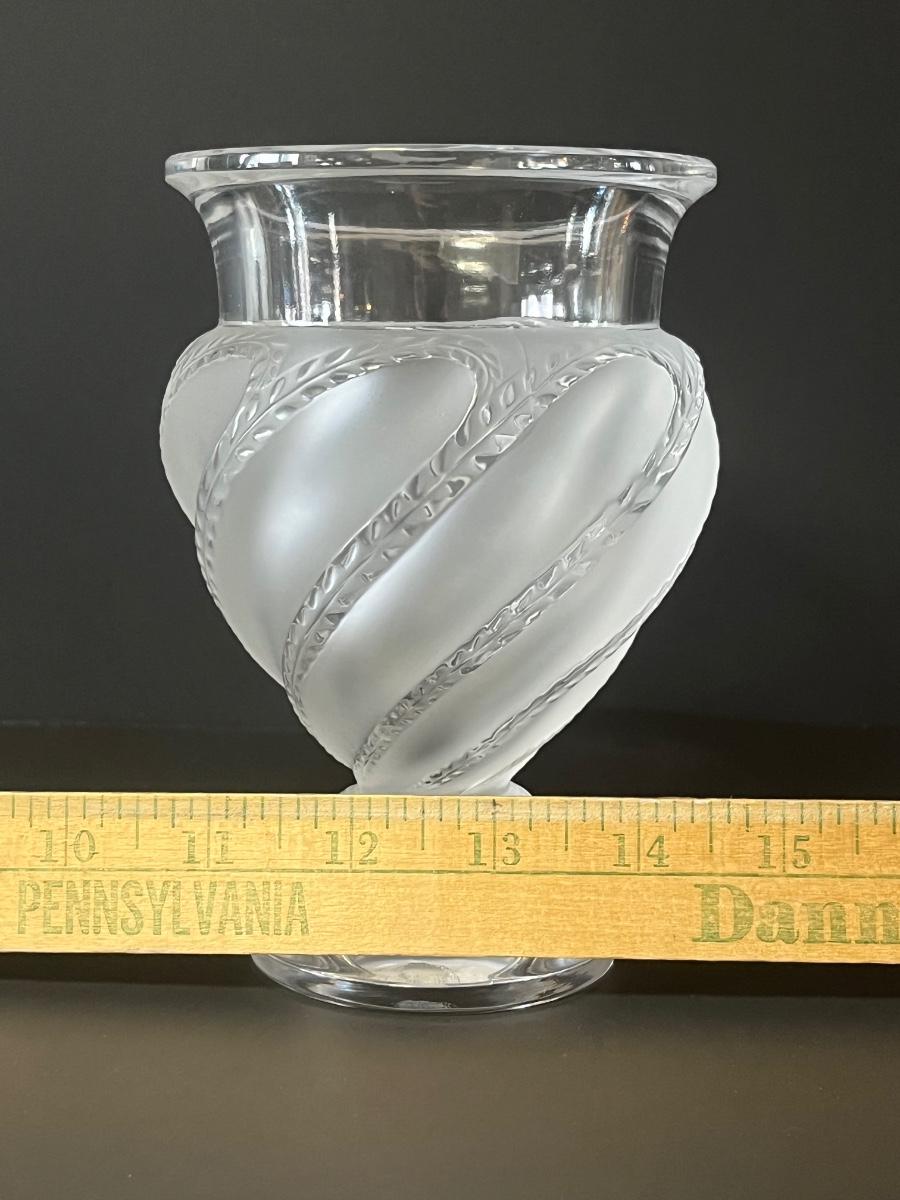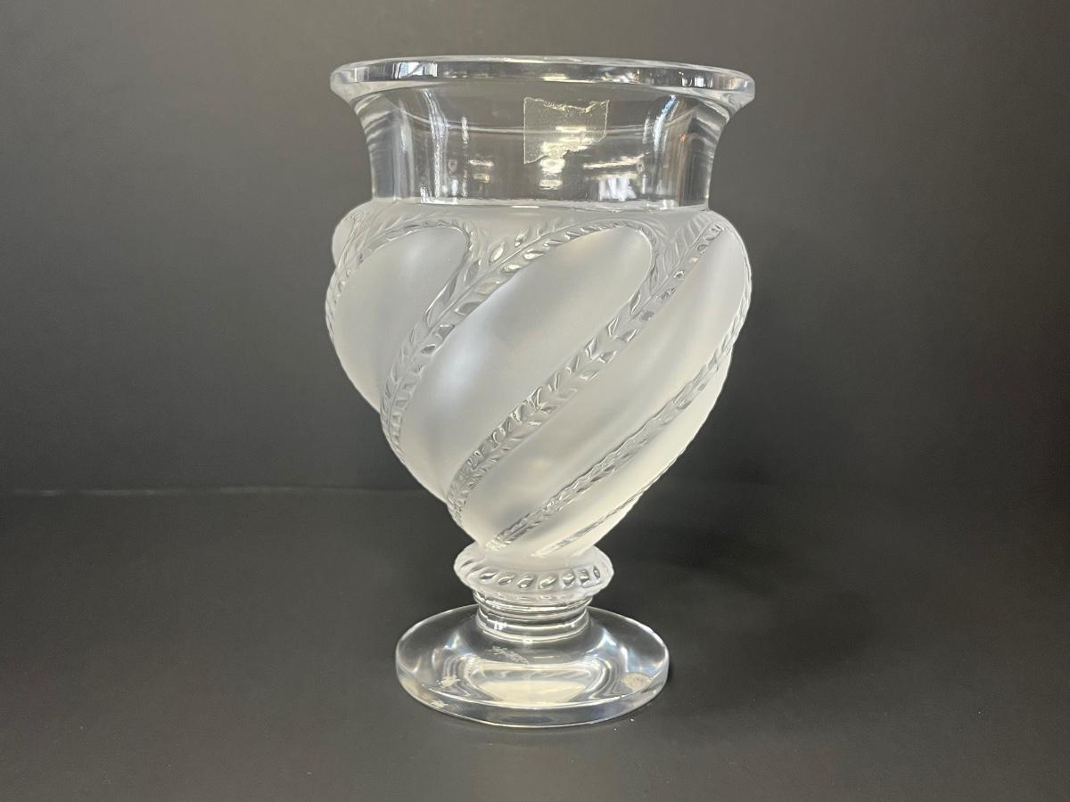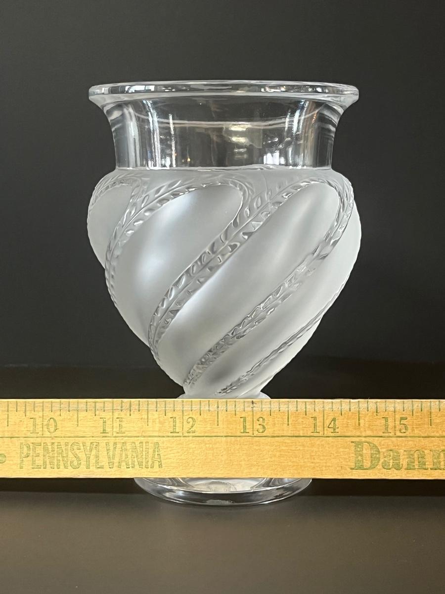 Beautiful lalique crystal vase, Ermenonville pattern. Please see all pictures as they are the best representation of the items. The pictures show condition, measurements if taken, and what is included in the lot. Due to the large amount that we photograph and the time frame, we are not always able to take measurements. All items unless noted, are pre-owned and have been used. If you purchased furniture, you must bring help. We do not allow one person to carry large furniture out on their own. Bring help, tools and a truck for the safety of our client’s homes, and your personal safety. Any damages that result to the property including walls, and floors due to moving of the furniture will be charged to the buyer. Company policy. Thank you.