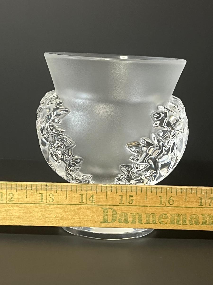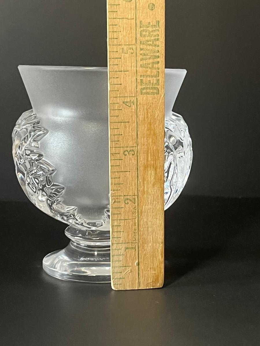 Vintage Lalqiue frosted crystal vase. Please see all pictures as they are the best representation of the items. The pictures show condition, measurements if taken, and what is included in the lot. Due to the large amount that we photograph and the time frame, we are not always able to take measurements. All items unless noted, are pre-owned and have been used. If you purchased furniture, you must bring help. We do not allow one person to carry large furniture out on their own. Bring help, tools and a truck for the safety of our client’s homes, and your personal safety. Any damages that result to the property including walls, and floors due to moving of the furniture will be charged to the buyer. Company policy. Thank you.