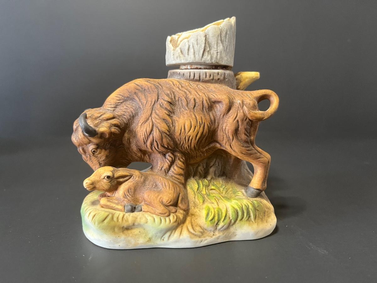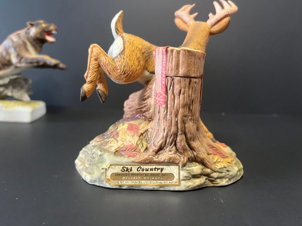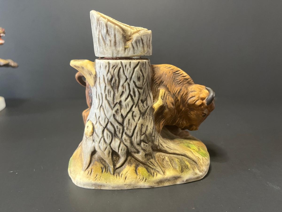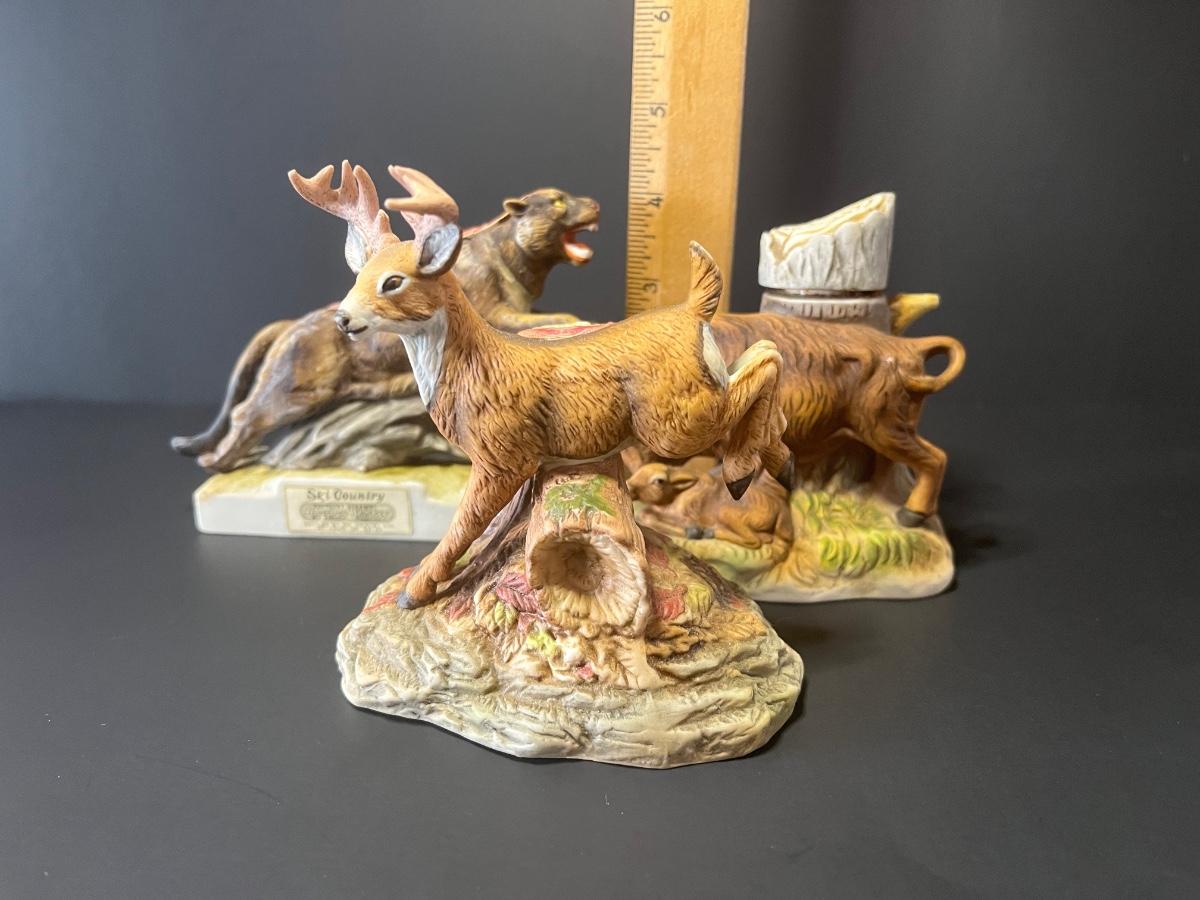 3 vintage liquor decanters, Bison, Deer and Mountain lion. For collecting/displaying purposes. Pre-owned.