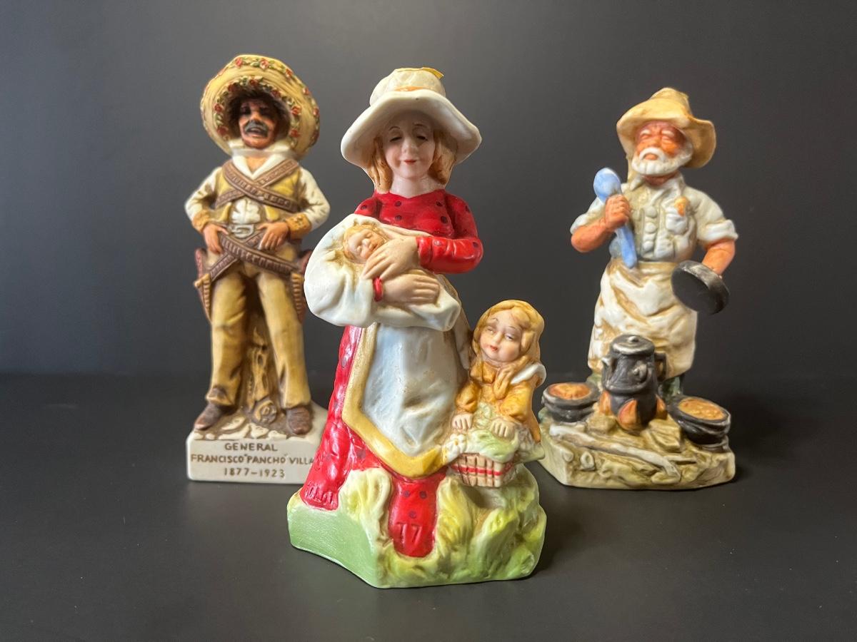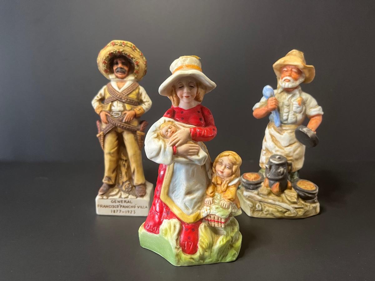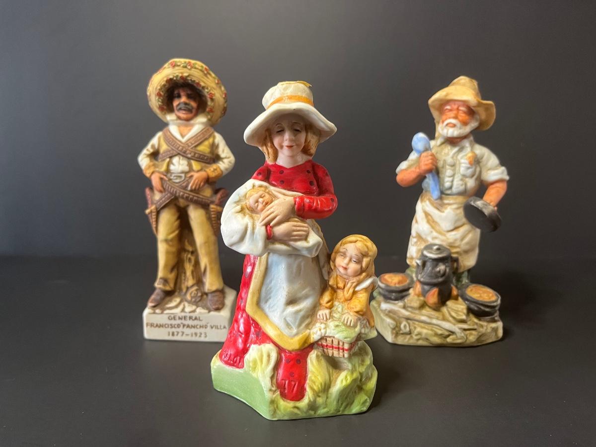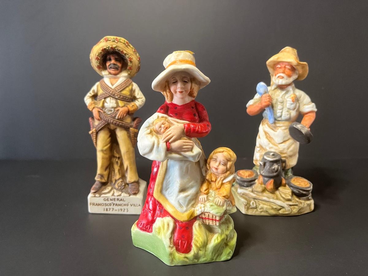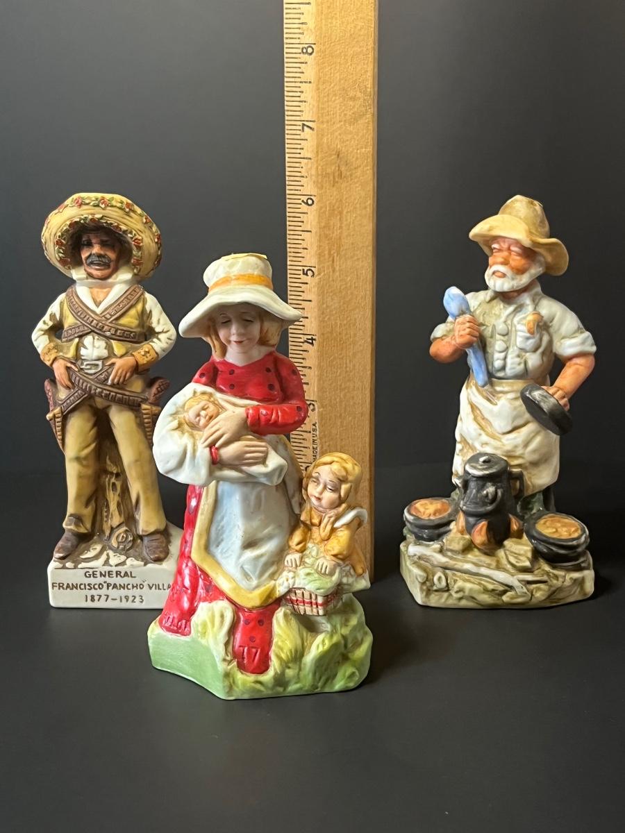Pnacho villa, woman with children and man cooking liquor decanters. For collecting/displaying purposes. Pre-owned. Please see all pictures as they are the best representation of the items. The pictures show condition, measurements if taken, and what is included in the lot. Due to the large amount that we photograph and the time frame, we are not always able to take measurements. All items unless noted, are pre-owned and have been used. If you purchased furniture, you must bring help. We do not allow one person to carry large furniture out on their own. Bring help, tools and a truck for the safety of our client’s homes, and your personal safety. Any damages that result to the property including walls, and floors due to moving of the furniture will be charged to the buyer. Company policy. Thank you.