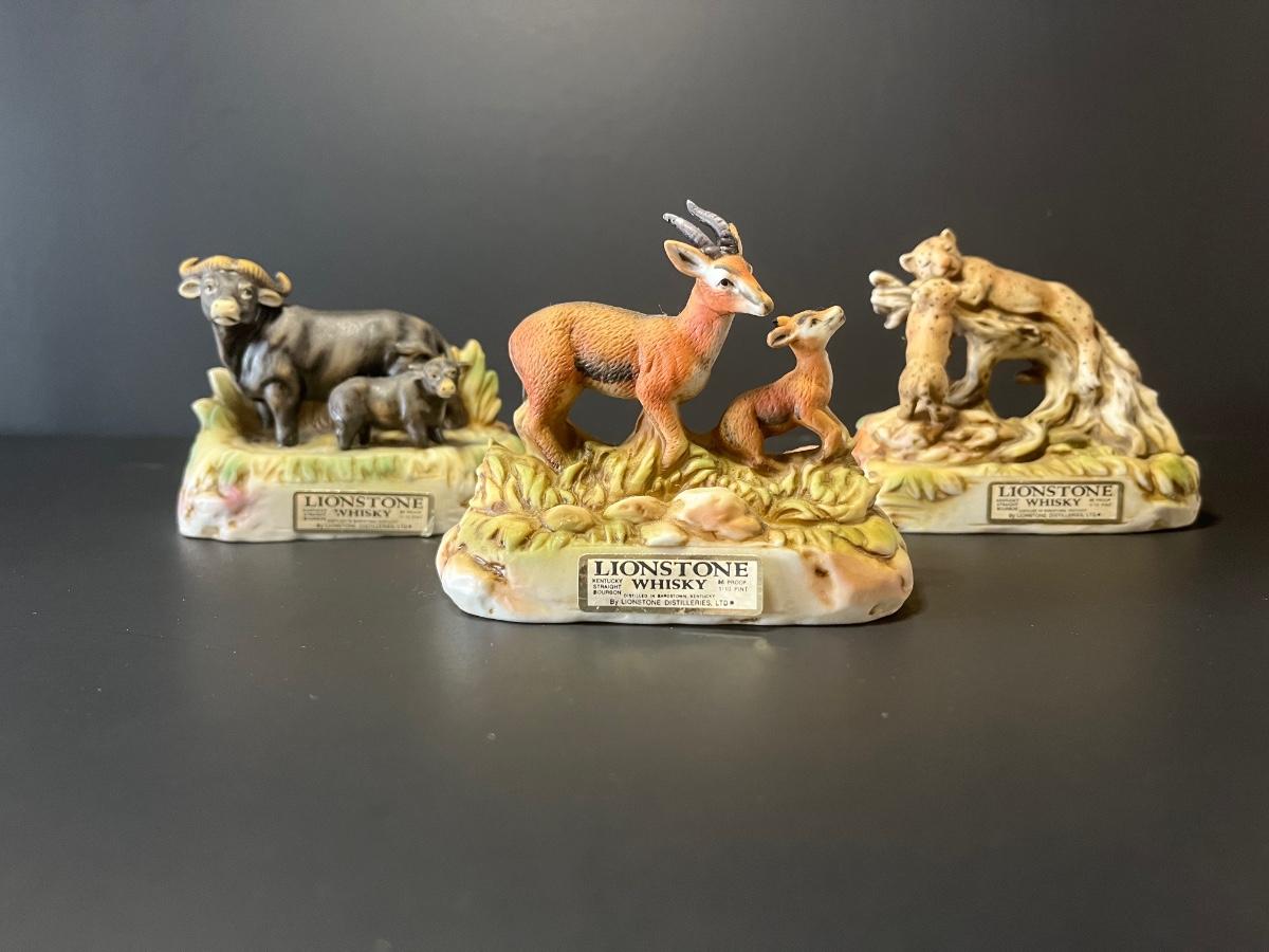 Gazelle, Cape Buffalo and Leopard liquor decanters.