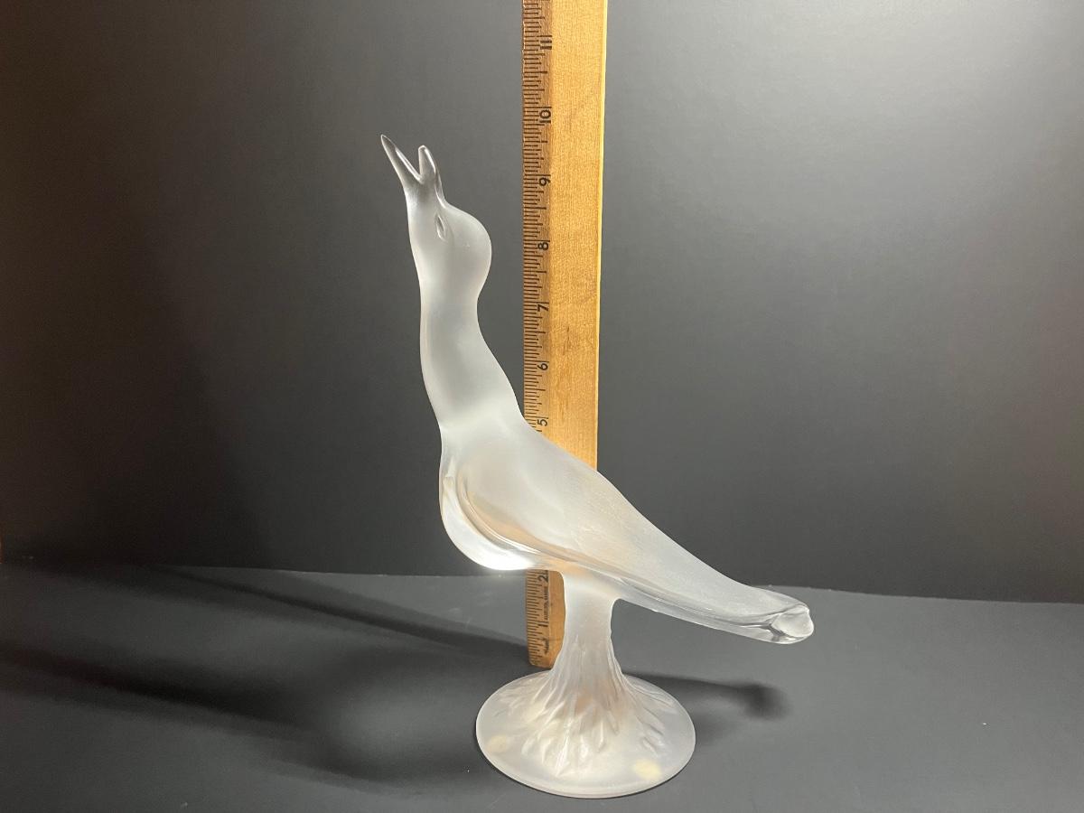 Frosted Lalique seagull figurine. Please see all pictures as they are the best representation of the items. The pictures show condition, measurements if taken, and what is included in the lot. Due to the large amount that we photograph and the time frame, we are not always able to take measurements. All items unless noted, are pre-owned and have been used. If you purchased furniture, you must bring help. We do not allow one person to carry large furniture out on their own. Bring help, tools and a truck for the safety of our client’s homes, and your personal safety. Any damages that result to the property including walls, and floors due to moving of the furniture will be charged to the buyer. Company policy. Thank you.