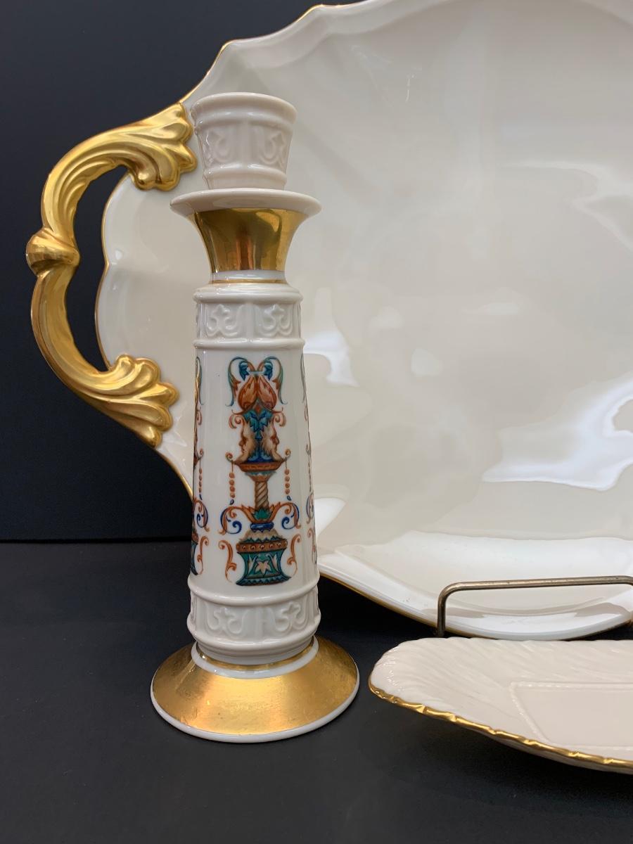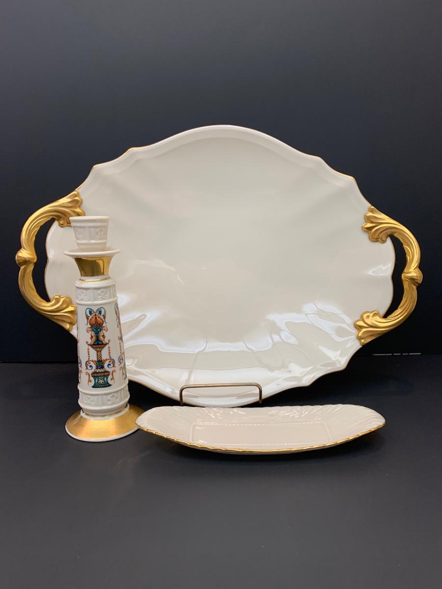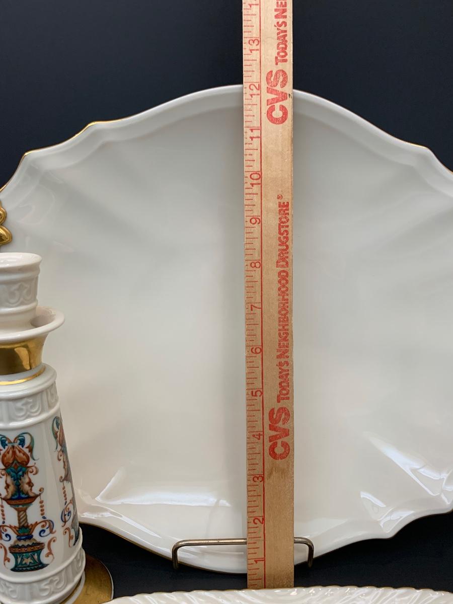 LOT 26R: Vintage Lenox Candle Stick w/24-k Gold Accents, Serving Platter & Trinket Dish