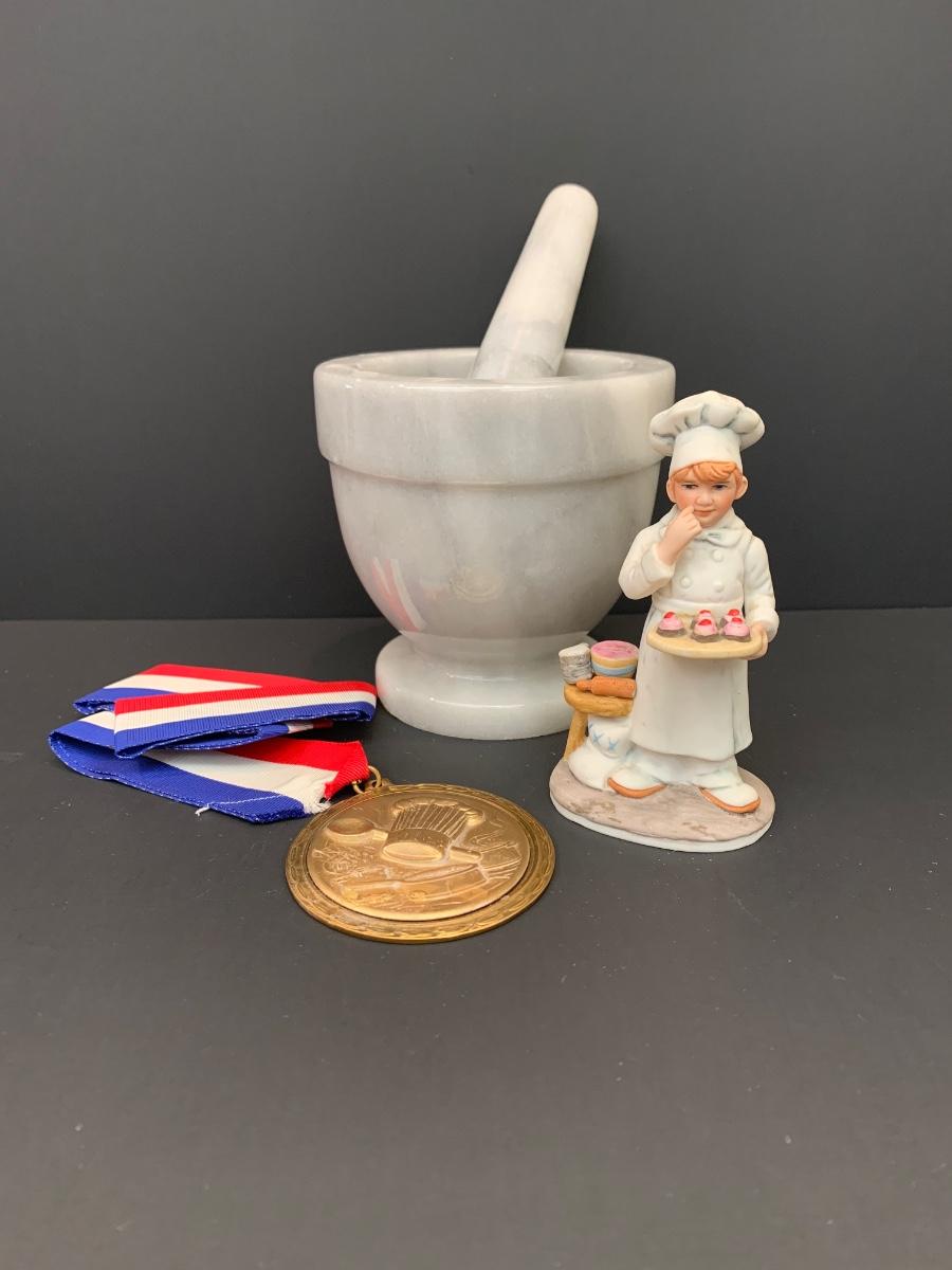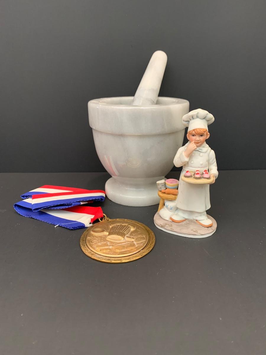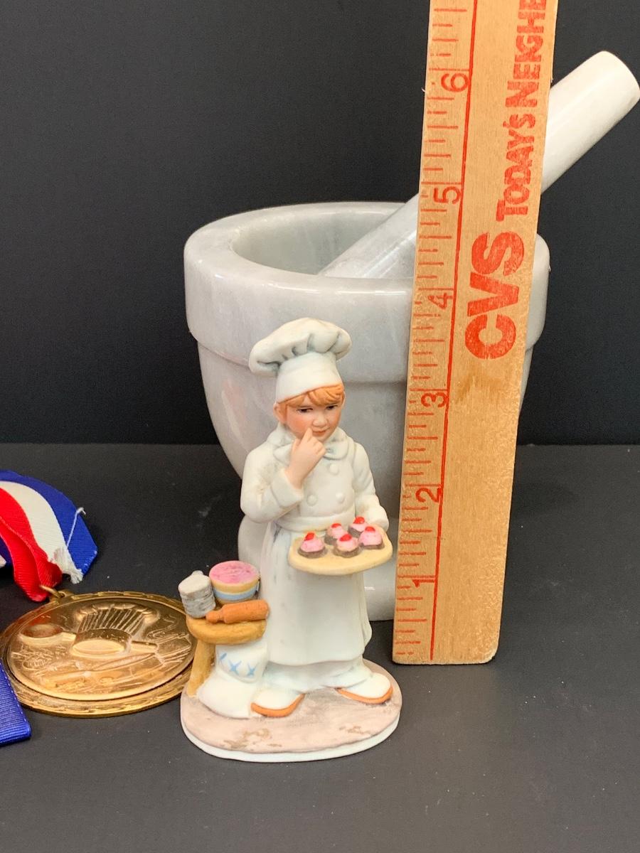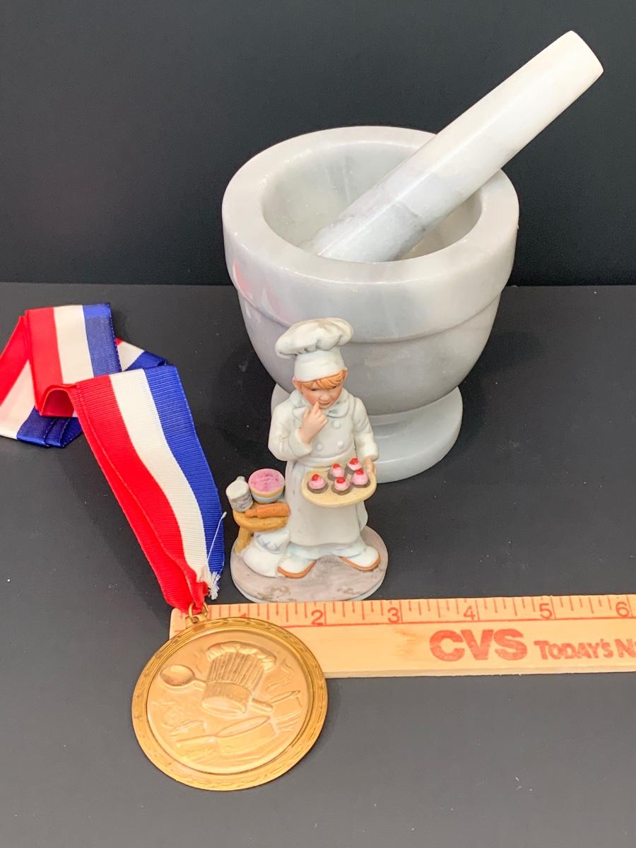 Marble mortar & pestle, Reco Collection Figurine & Baking Medal