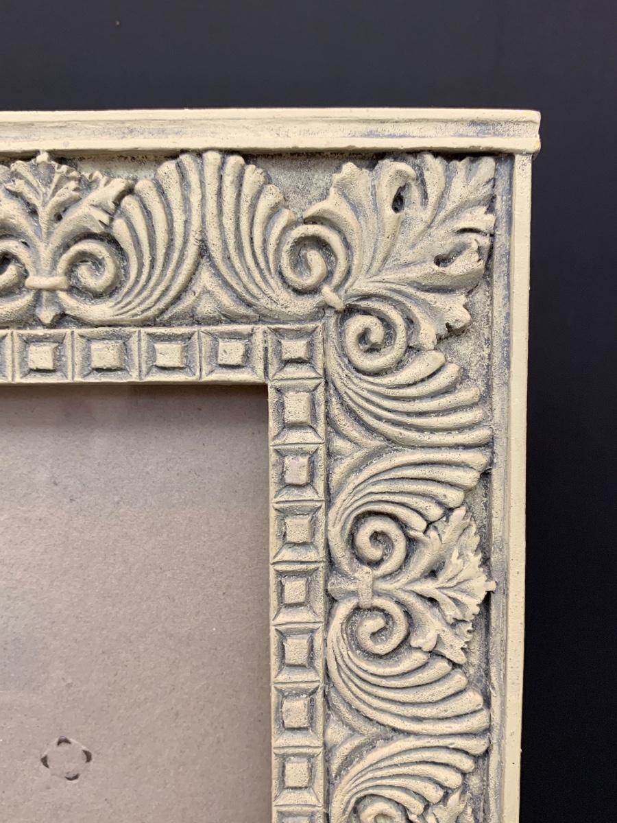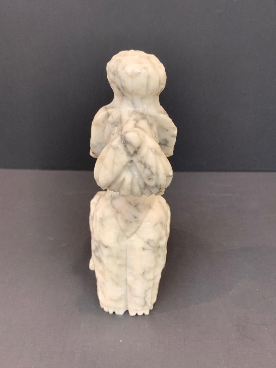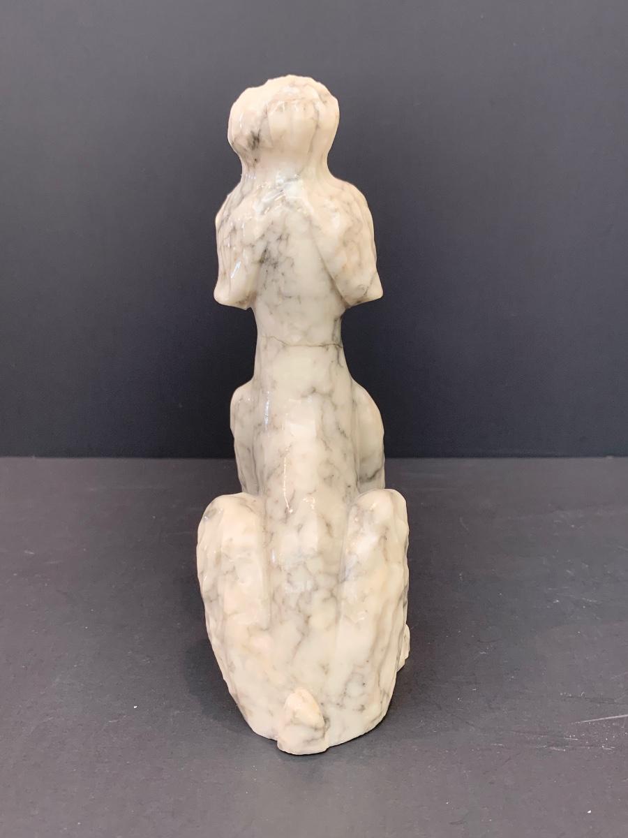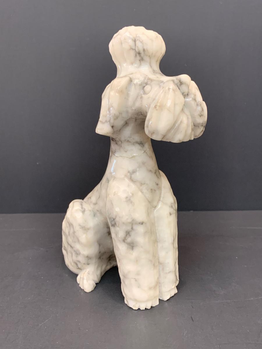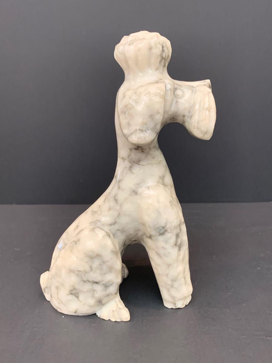 LOT 45: Alabaster Poodle Dog, Stone Frame, and Bombay Co. Clock.