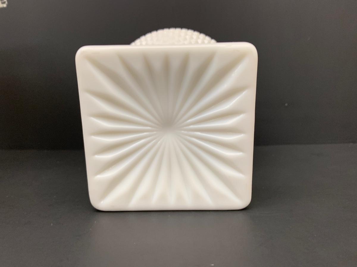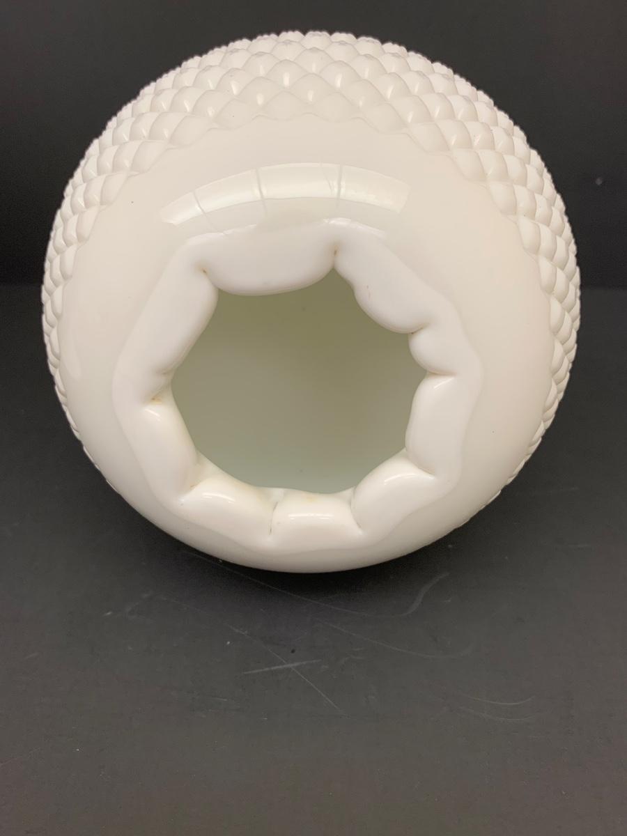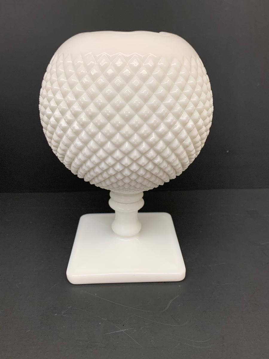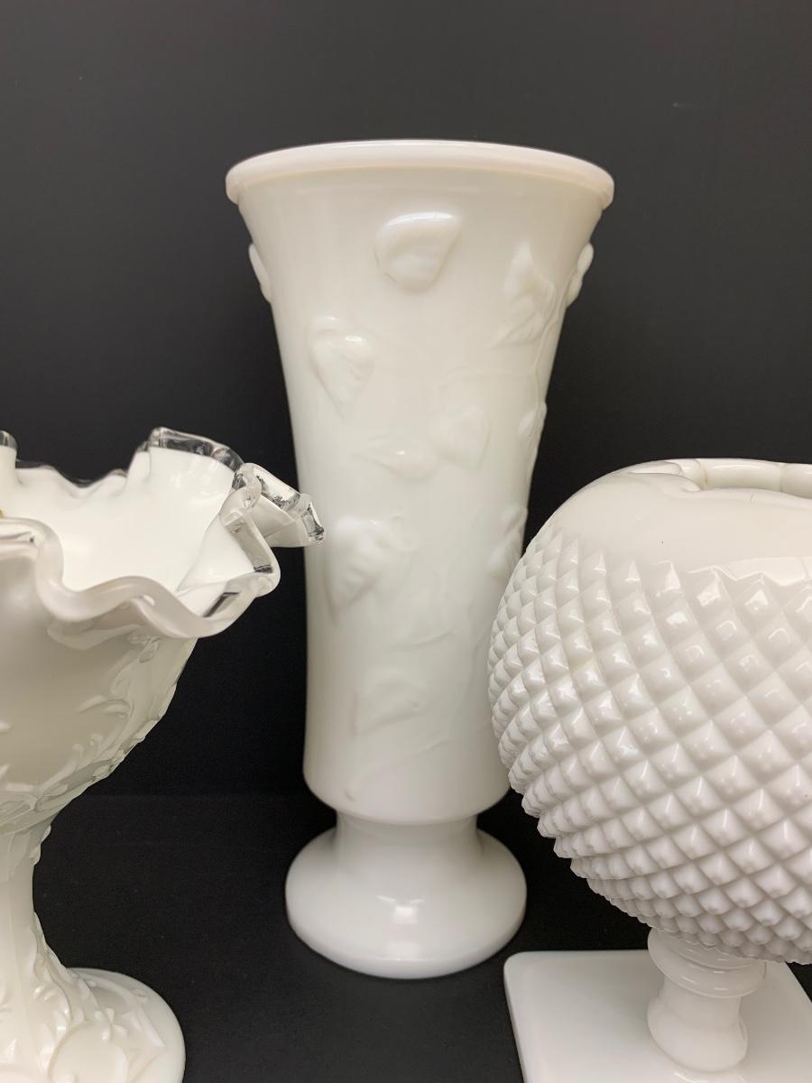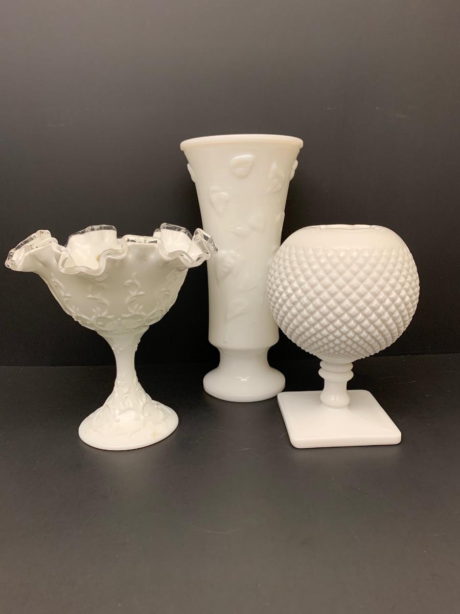 LOT 49: Ruffled Edge Labeled Fenton Candy/Vase and Milk Glass