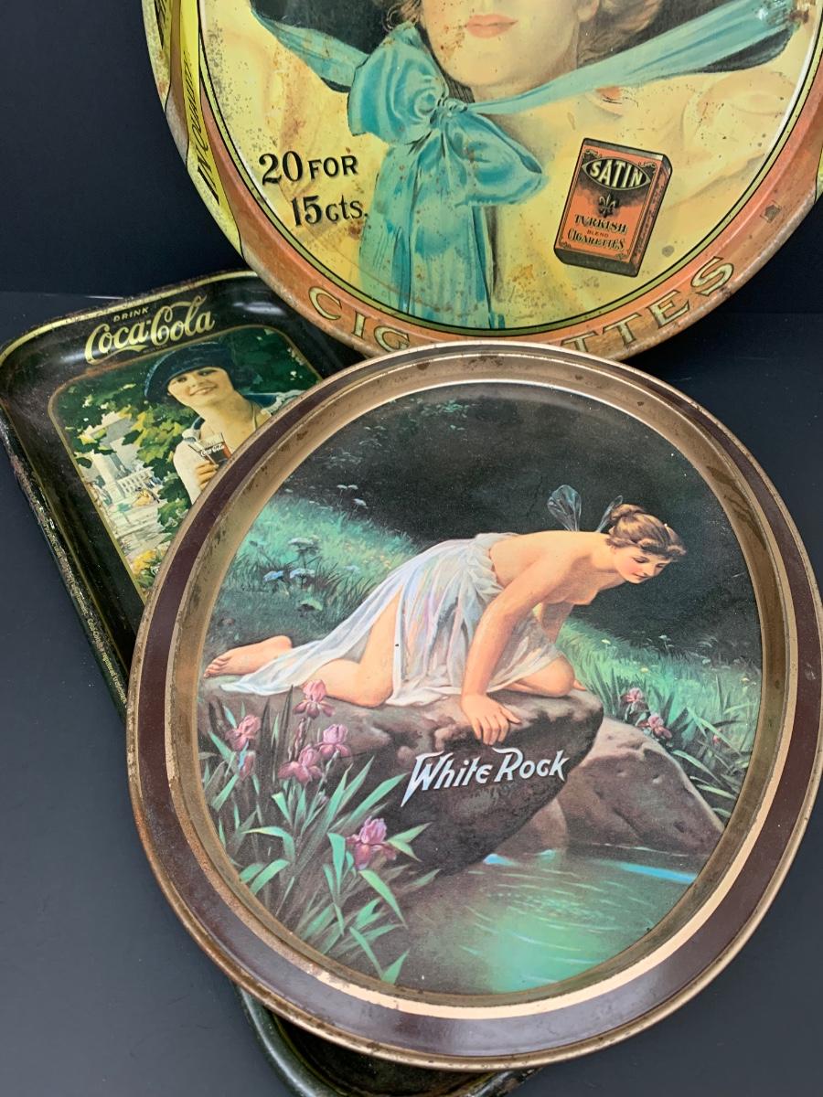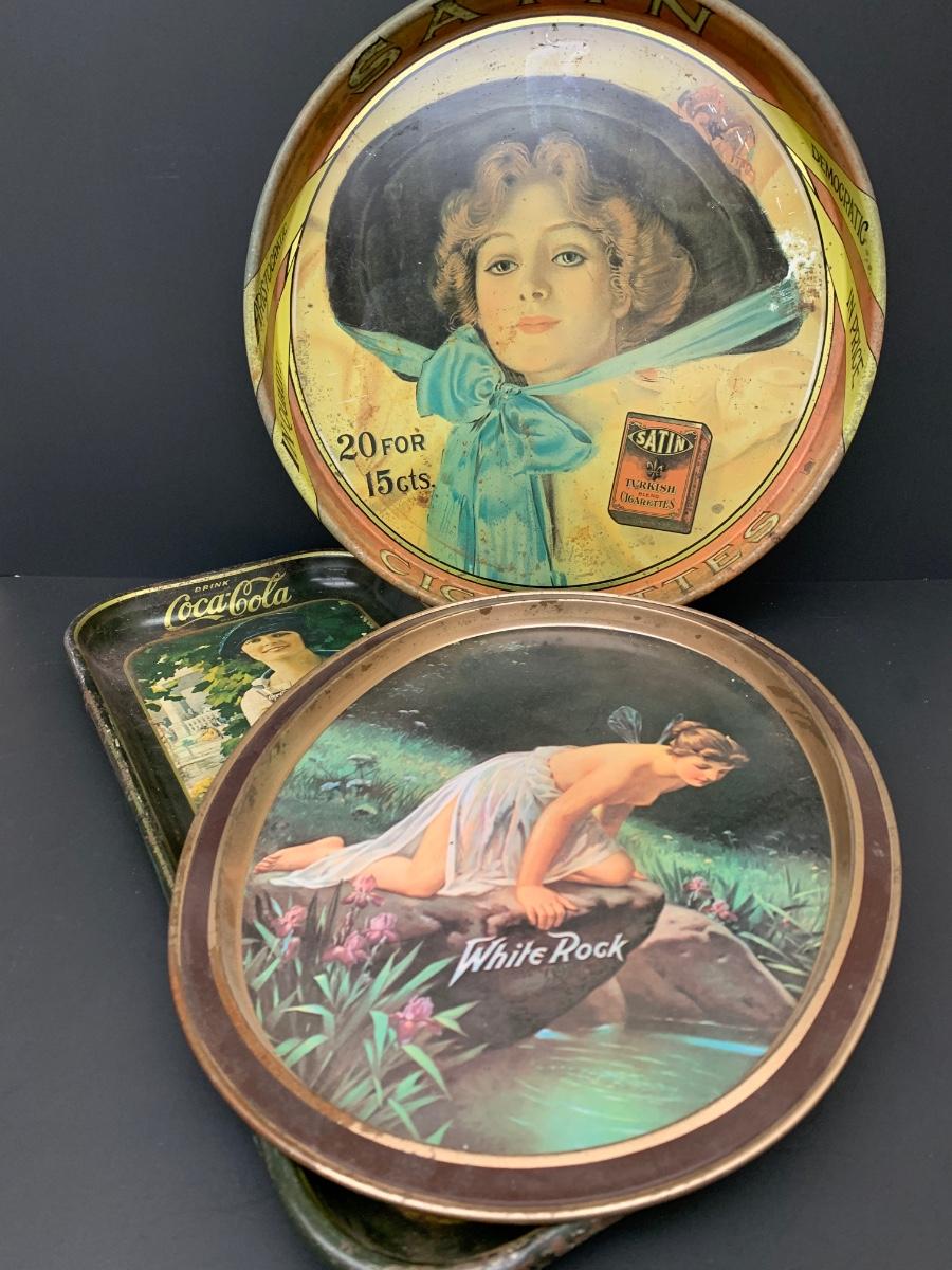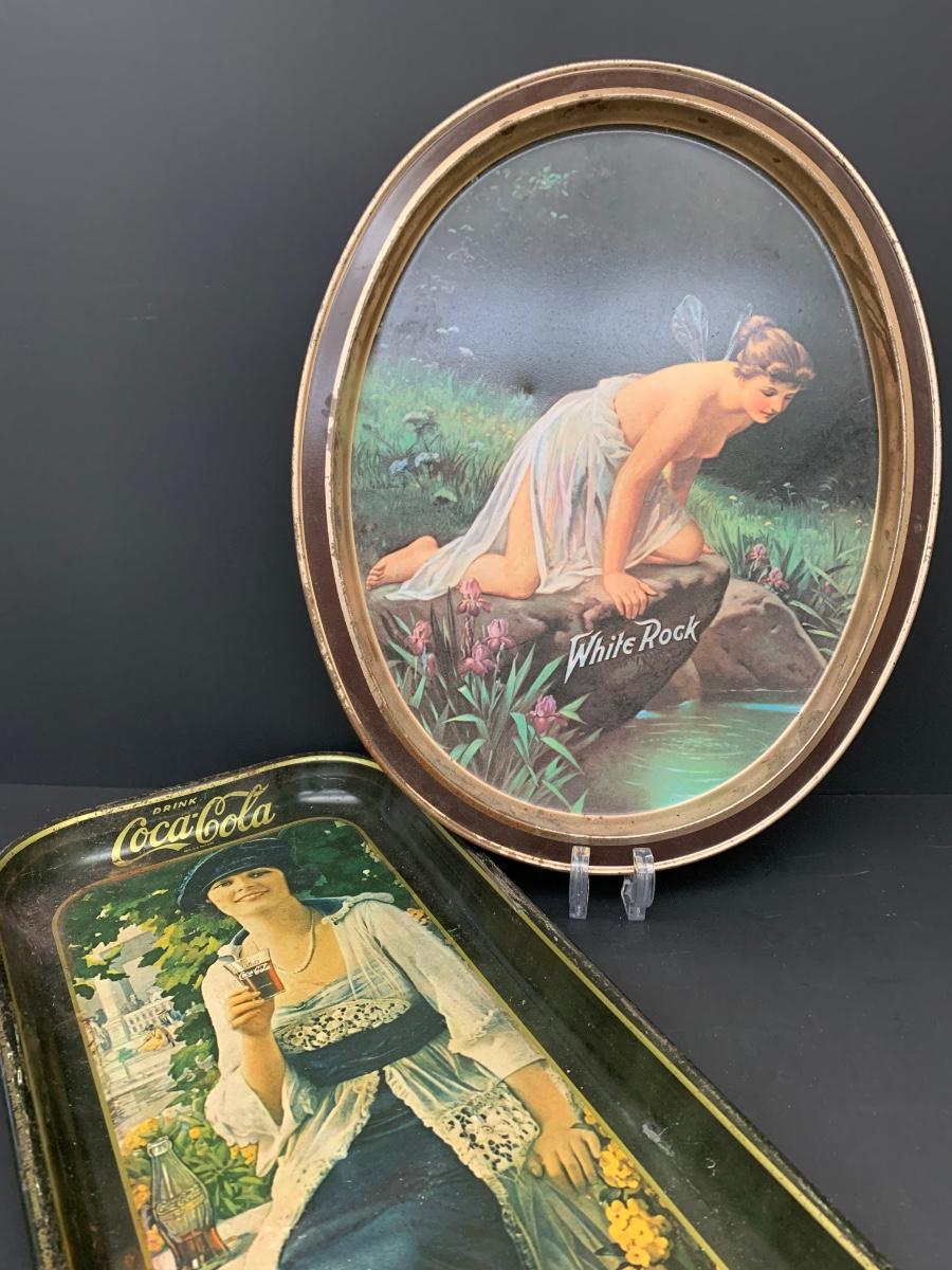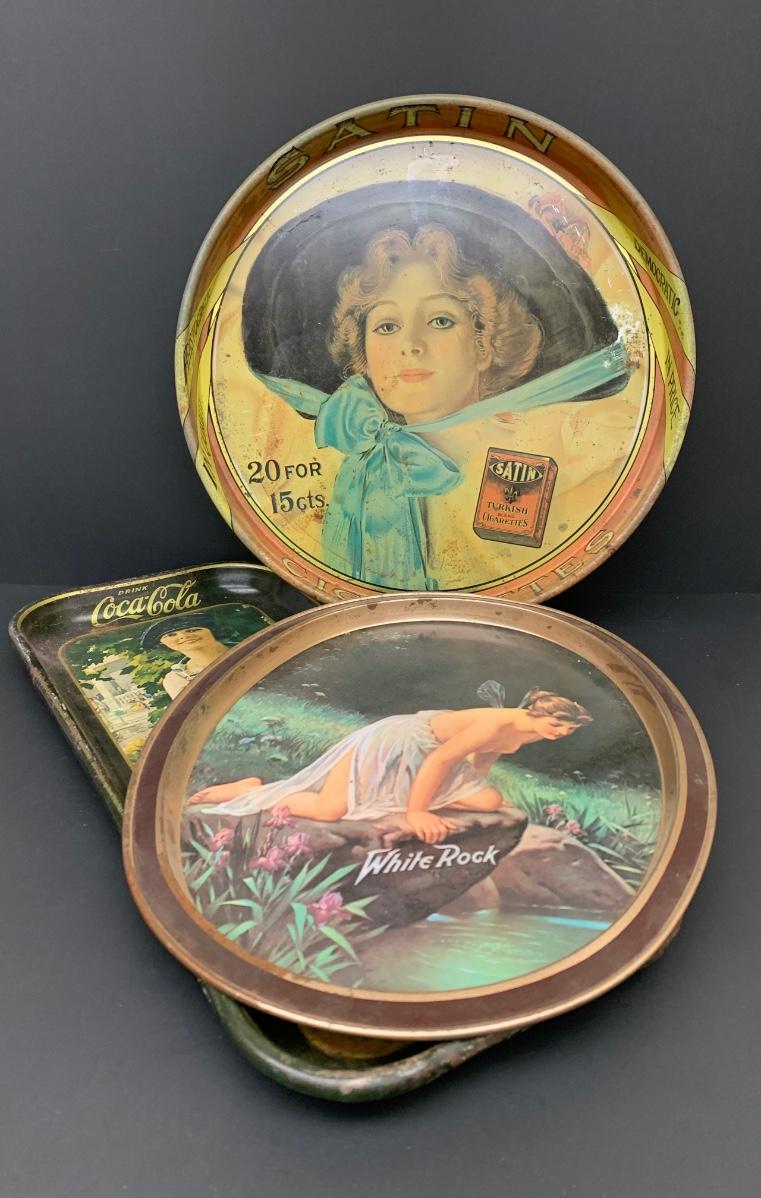 LOT 52: Lot of Three Vintage Metal Trays Cheinco and More: White Rock, Coca-Cola and More