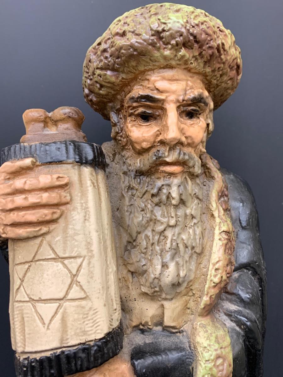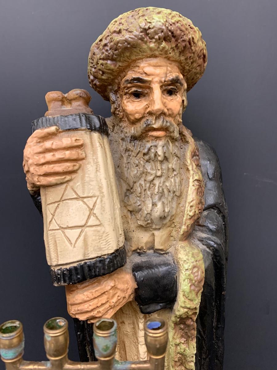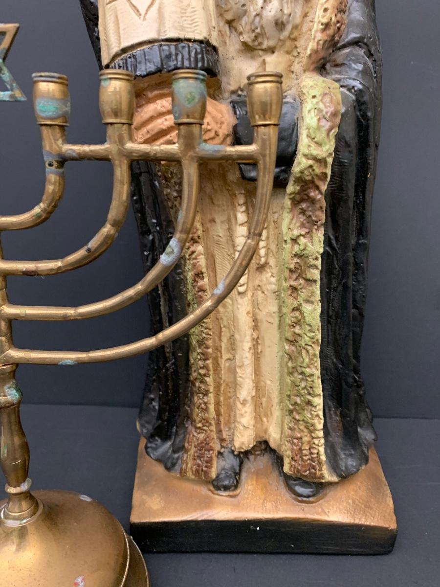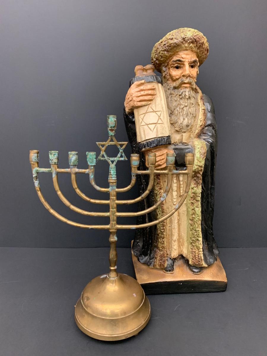 LOT Vintage Esco Productions Chalkware Rabbi Statue and Menorah