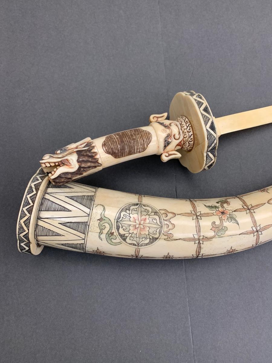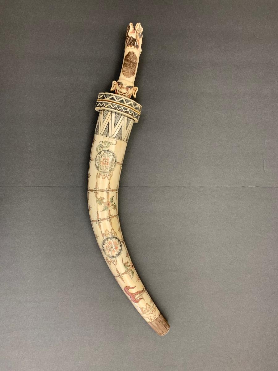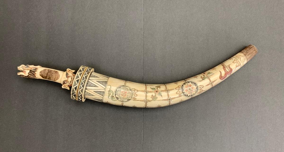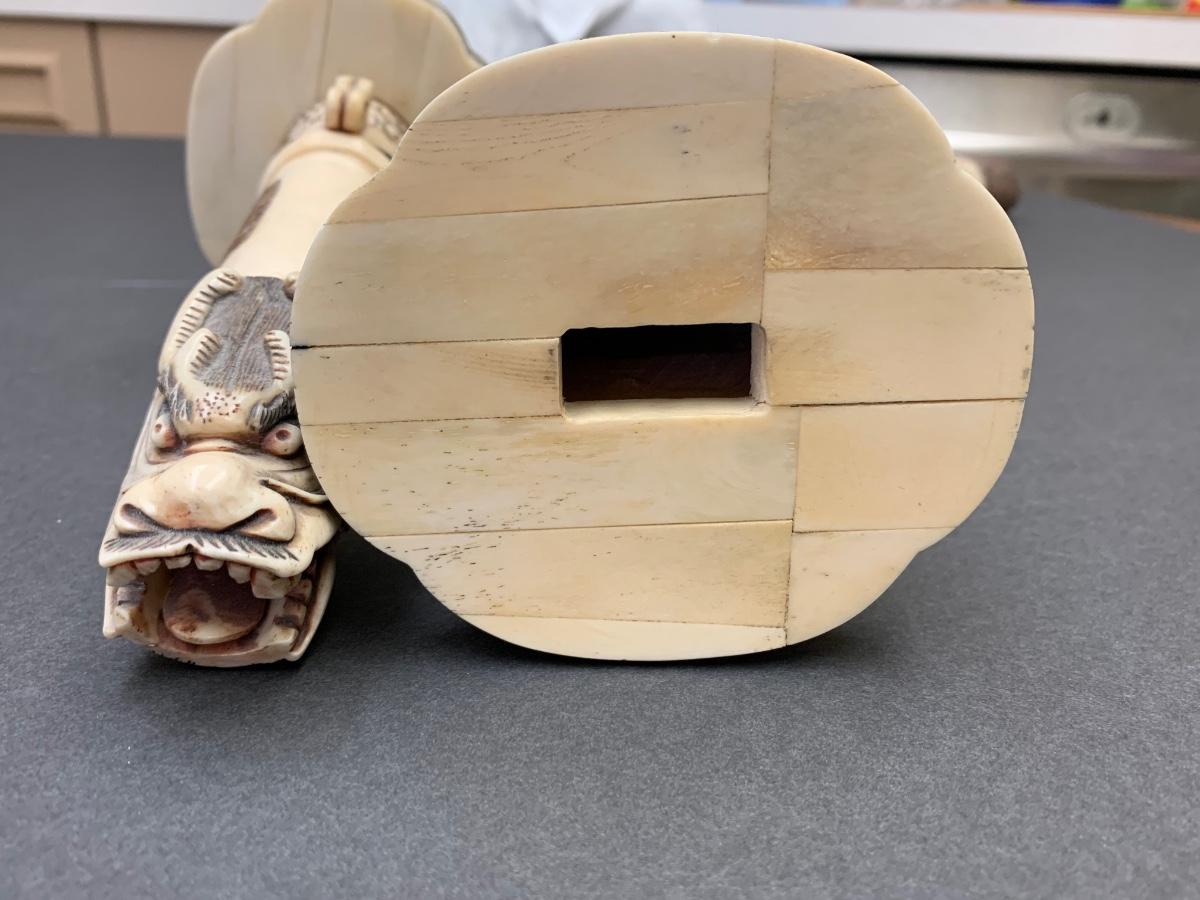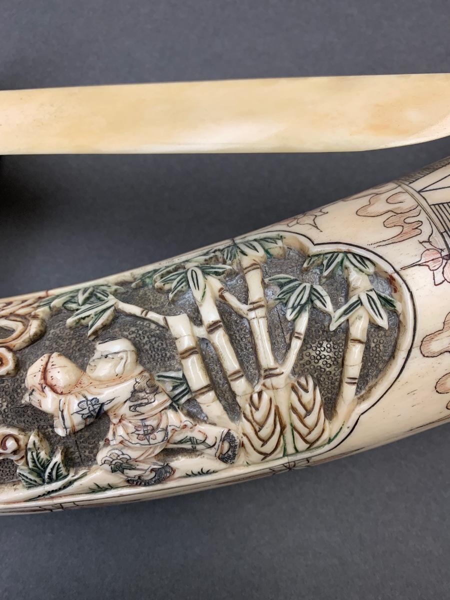 This is not ivory, it looks to be a heavy resin or bone of some sort. You can see where the maker pieced the horn part together, and that it is not one piece like a natural animal horn would be. Please see all pictures as they are the best representation of the items. The pictures show condition, measurements if taken, and what is included in the lot. Due to the large amount that we photograph and the time frame, we are not always able to take measurements. All items unless noted, are pre-owned and have been used. If you purchased furniture, you must bring help. We do not allow one person to carry large furniture out on their own. Bring help, tools and a truck for the safety of our client’s homes, and your personal safety. Any damages that result to the property including walls, and floors due to moving of the furniture will be charged to the buyer. Company policy. Thank you.