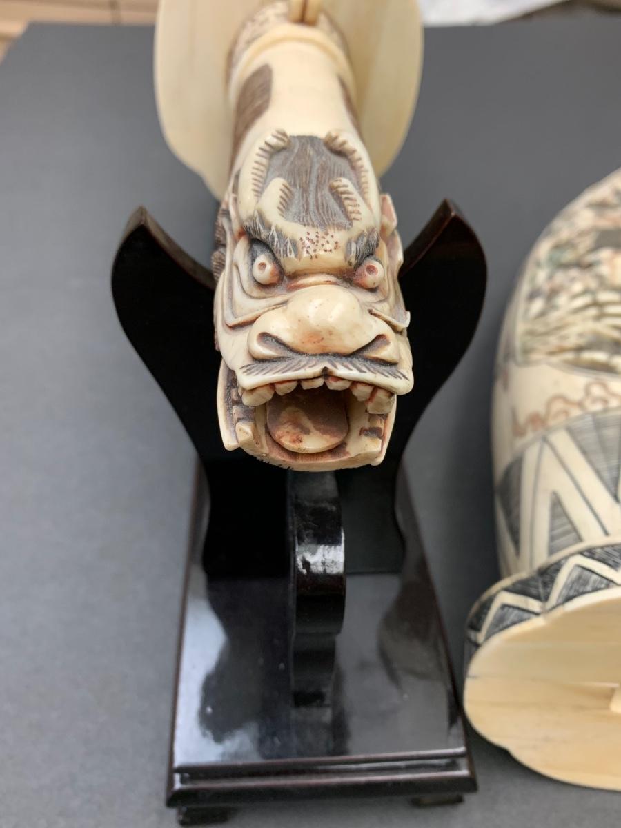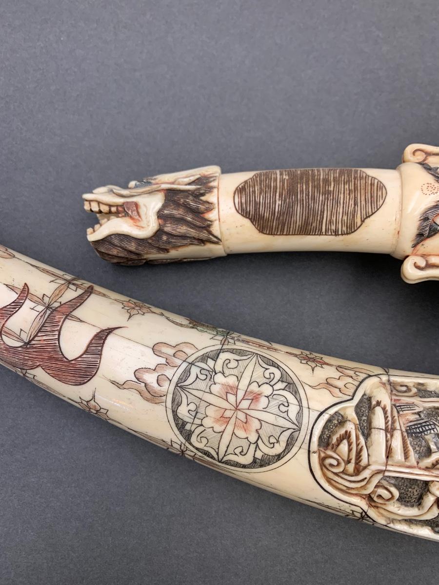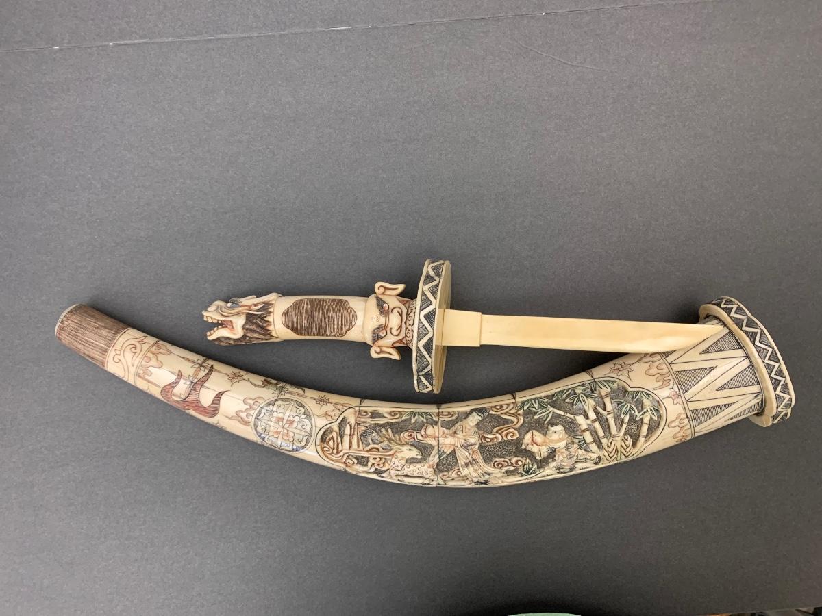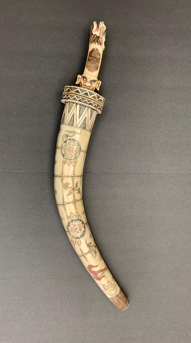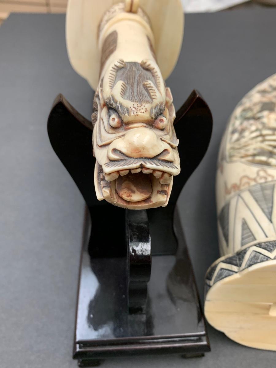 This is not ivory, it looks to be a heavy resin or bone of some sort. You can see where the maker pieced the horn part together, and that it is not one piece like a natural animal horn would be. Please see all pictures as they are the best representation of the items. The pictures show condition, measurements if taken, and what is included in the lot. Due to the large amount that we photograph and the time frame, we are not always able to take measurements. All items unless noted, are pre-owned and have been used. If you purchased furniture, you must bring help. We do not allow one person to carry large furniture out on their own. Bring help, tools and a truck for the safety of our client’s homes, and your personal safety. Any damages that result to the property including walls, and floors due to moving of the furniture will be charged to the buyer. Company policy. Thank you.
