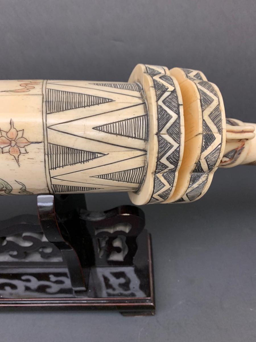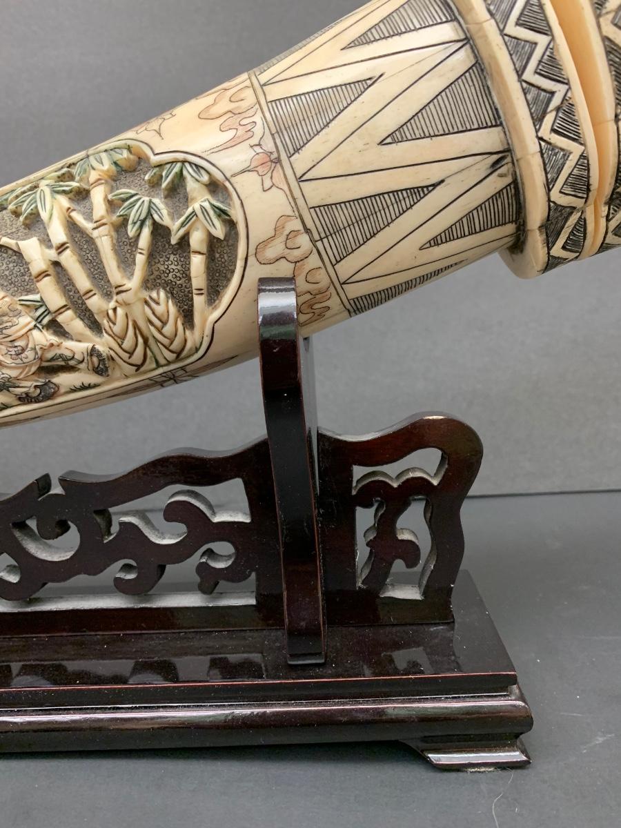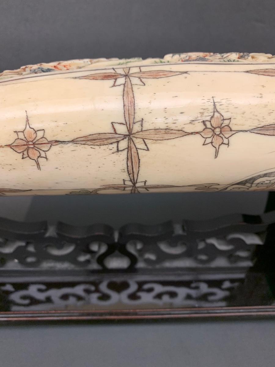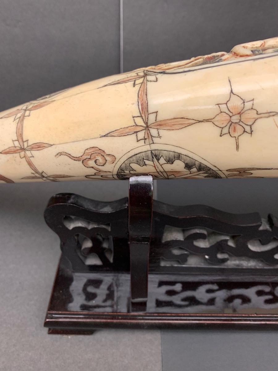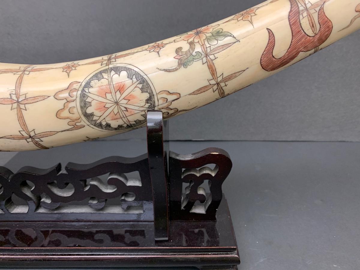 This is not ivory, it looks to be a heavy resin or bone of some sort. You can see where the maker pieced the horn part together, and that it is not one piece like a natural animal horn would be. Please see all pictures as they are the best representation of the items. The pictures show condition, measurements if taken, and what is included in the lot. Due to the large amount that we photograph and the time frame, we are not always able to take measurements. All items unless noted, are pre-owned and have been used. If you purchased furniture, you must bring help. We do not allow one person to carry large furniture out on their own. Bring help, tools and a truck for the safety of our client’s homes, and your personal safety. Any damages that result to the property including walls, and floors due to moving of the furniture will be charged to the buyer. Company policy. Thank you.