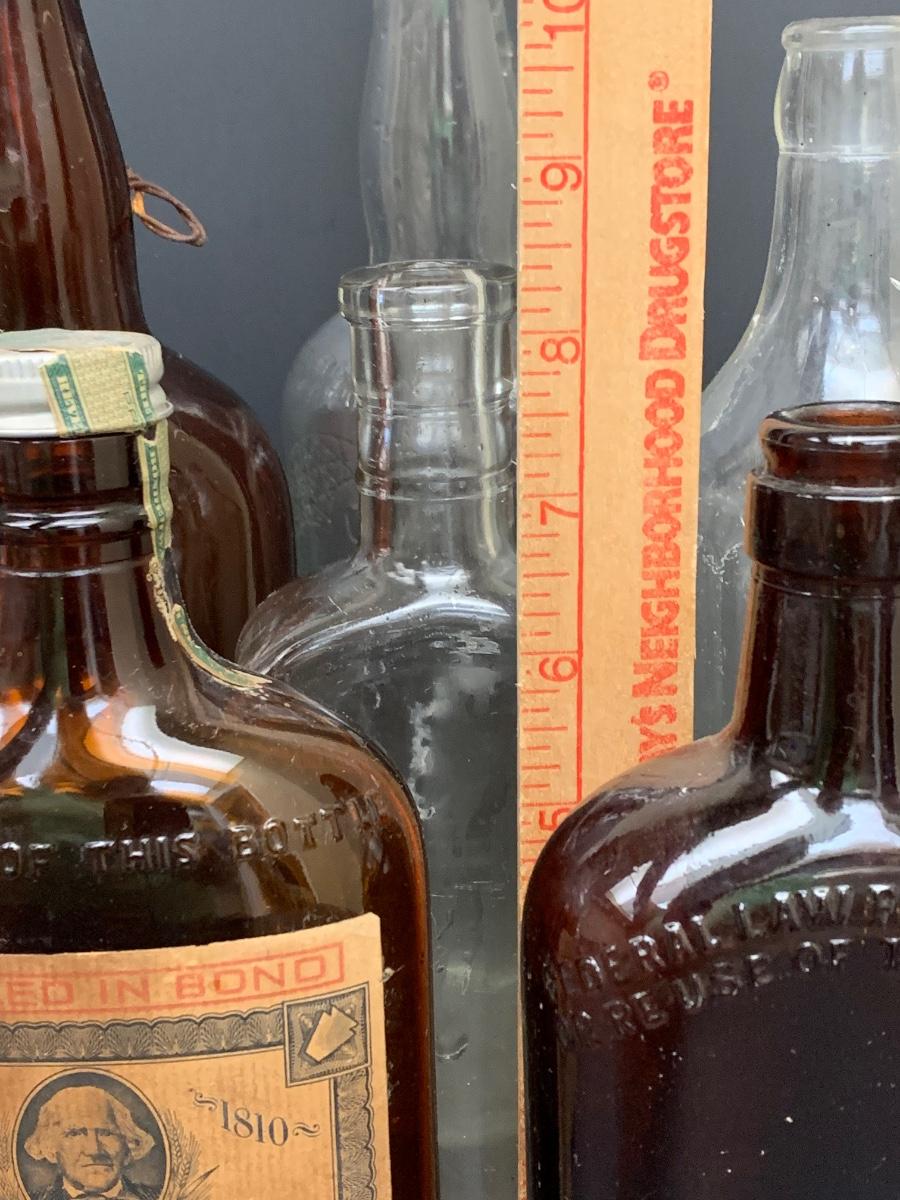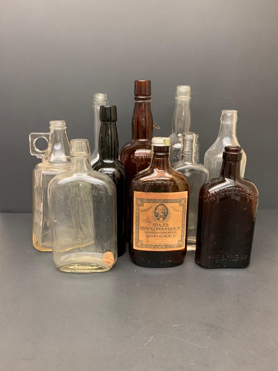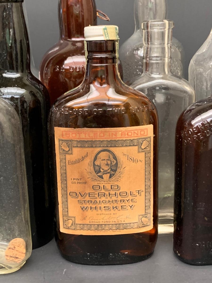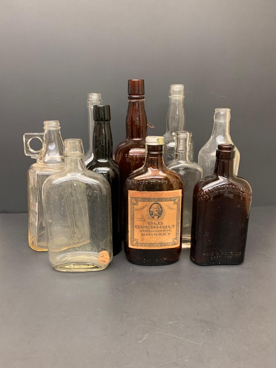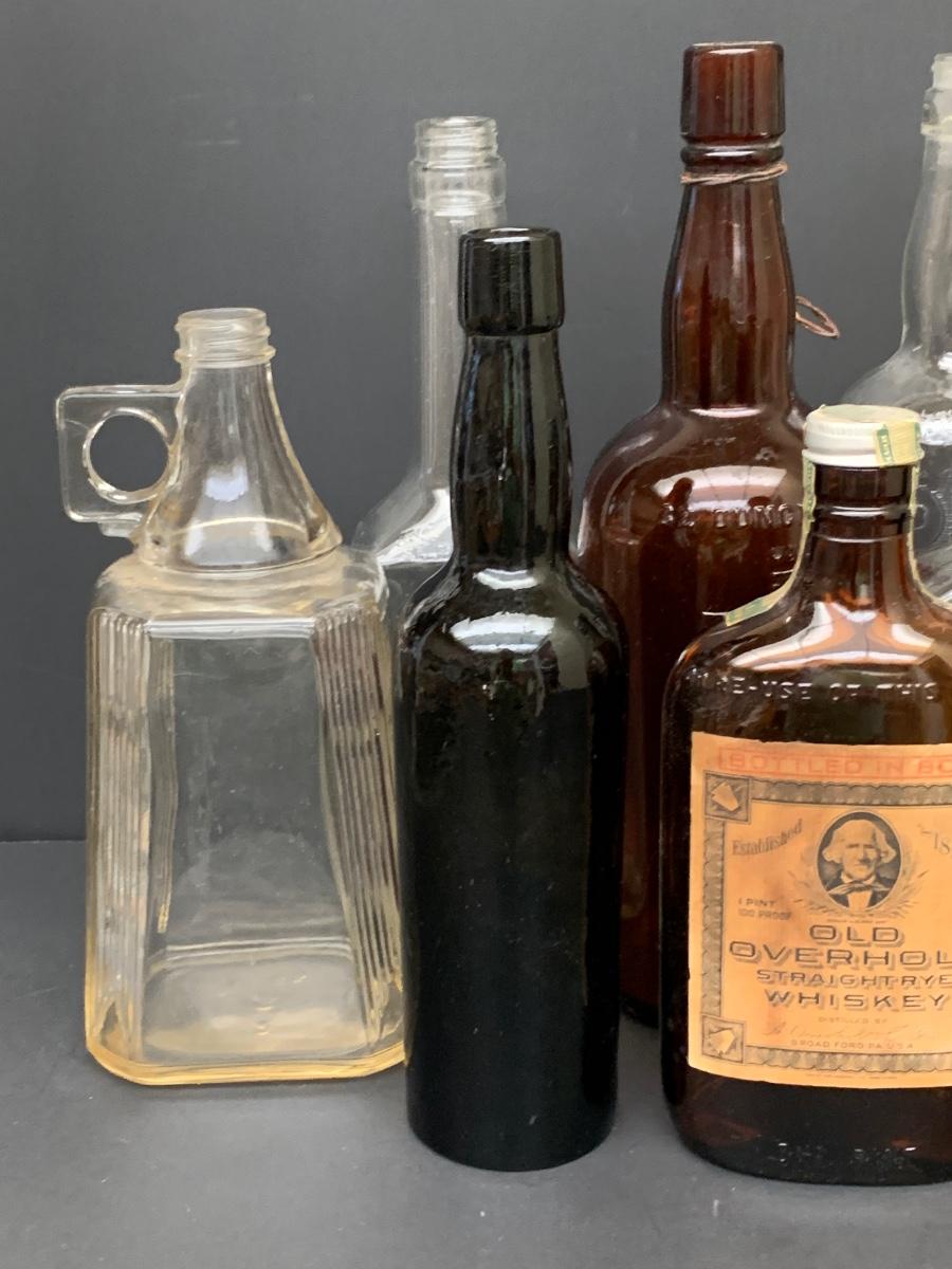 LOT 60R: Vintage & Unique Glass Bottles: Pint Bottles, Old Overholt Whiskey Bottle & More