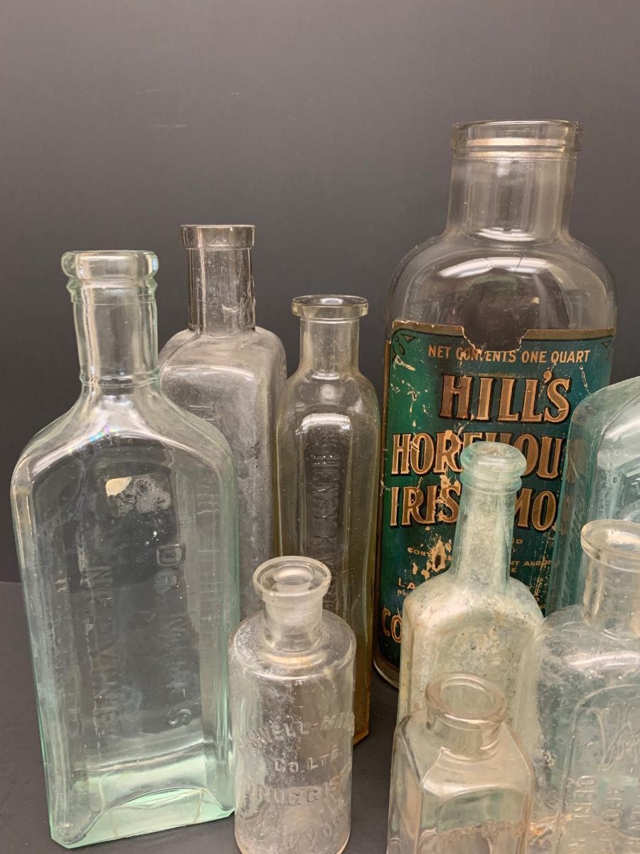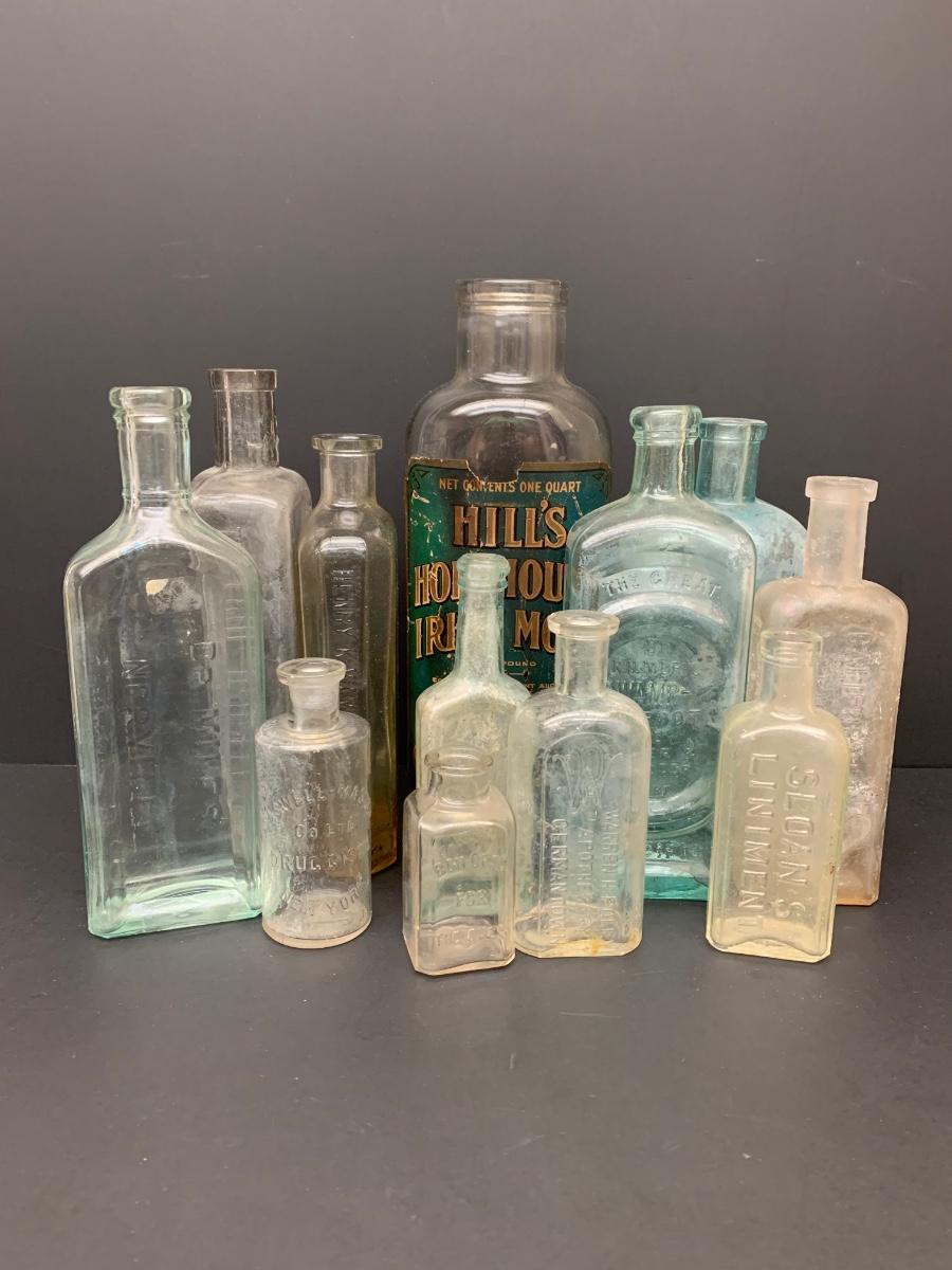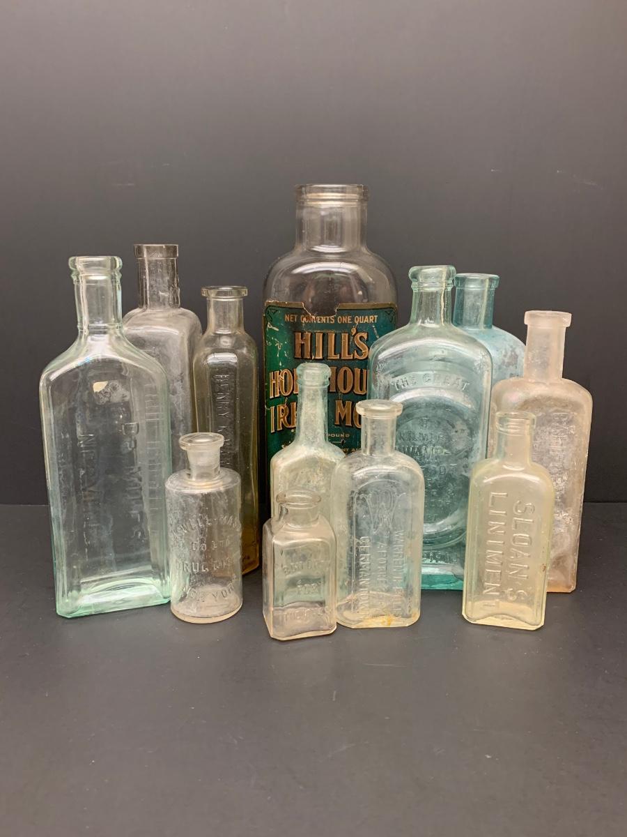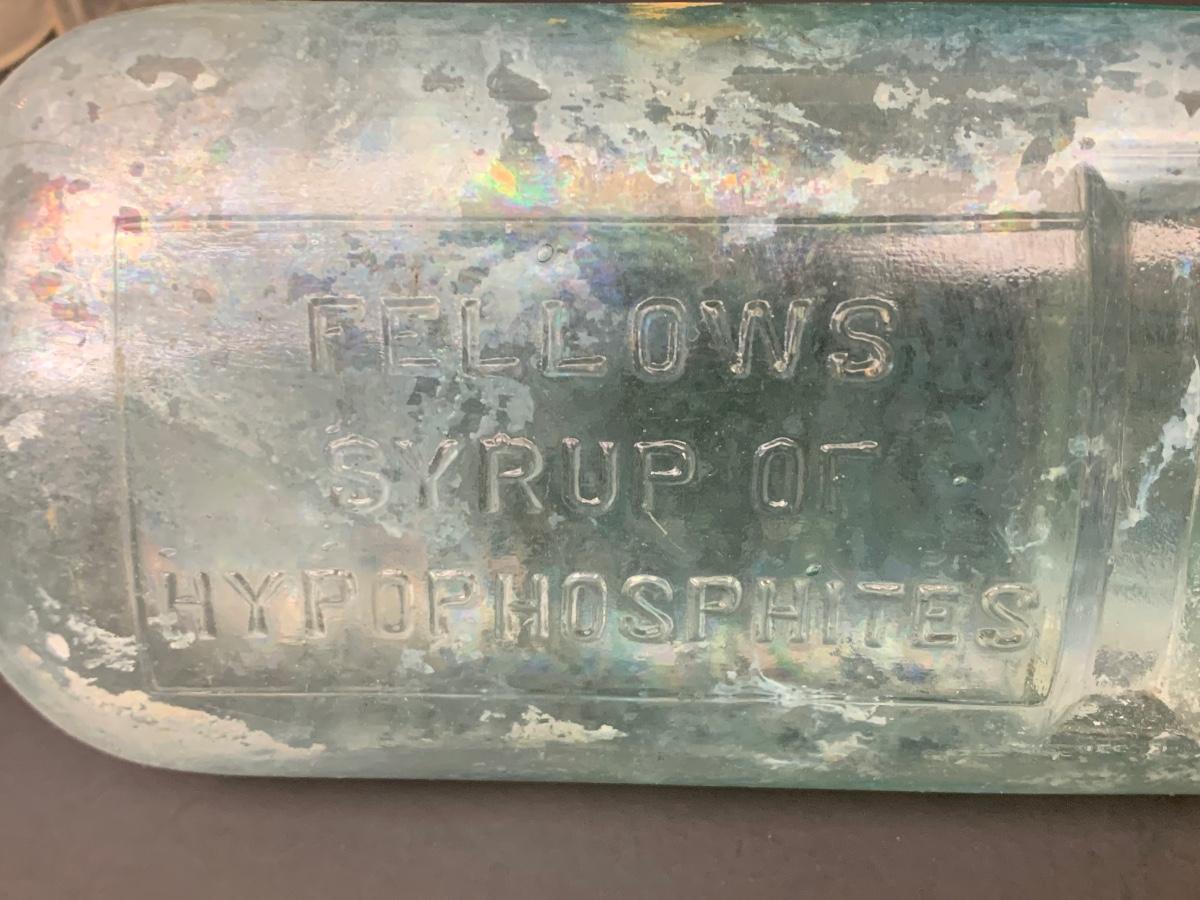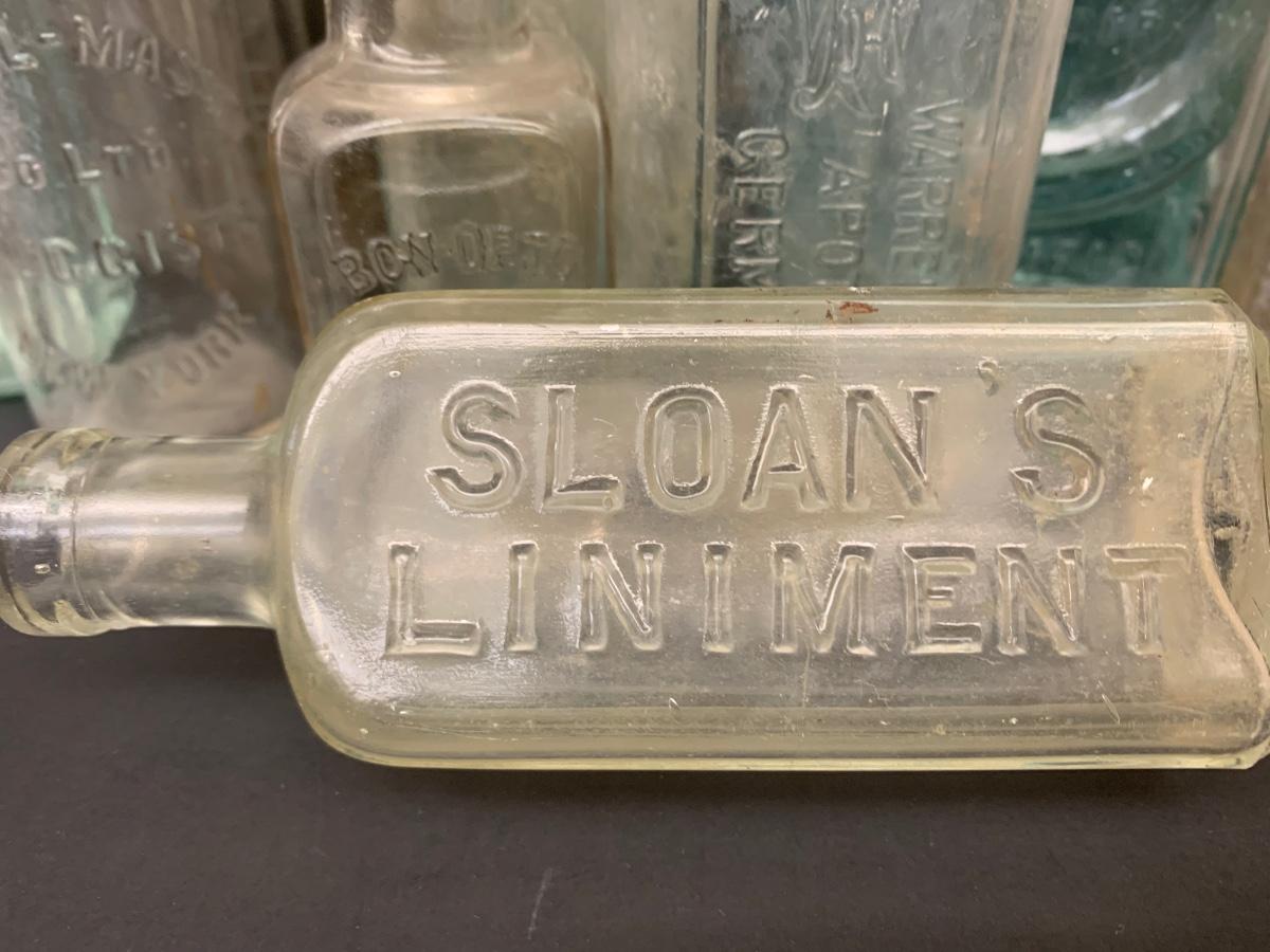LOT 62R: Vintage & Unique Glass Bottles: Sloan's Liniment, Fellows Syrup, Hill's Horehound Irish Moss & More.