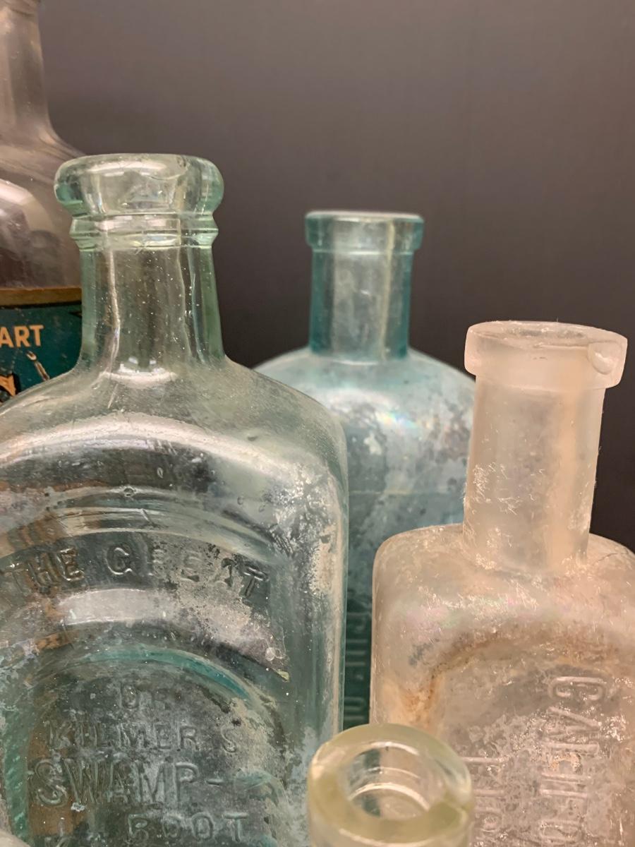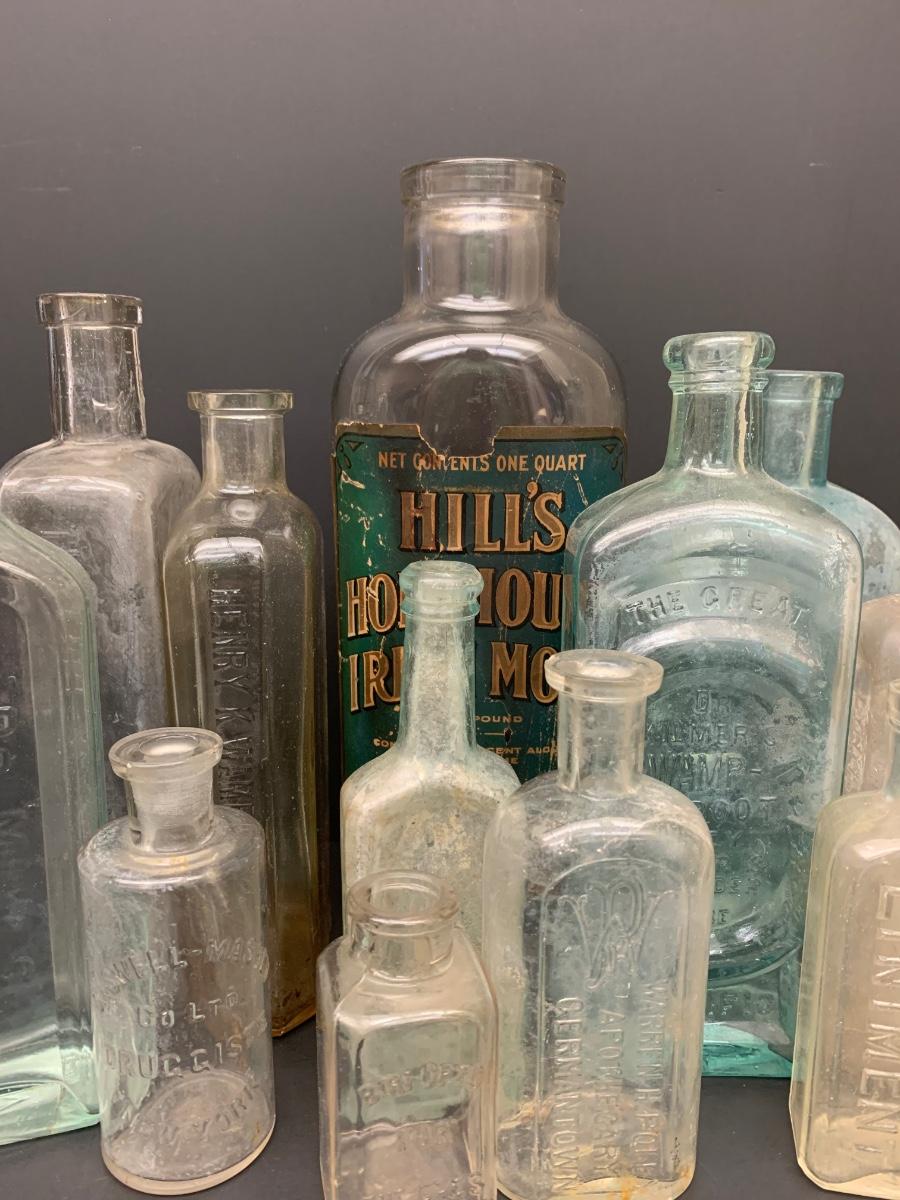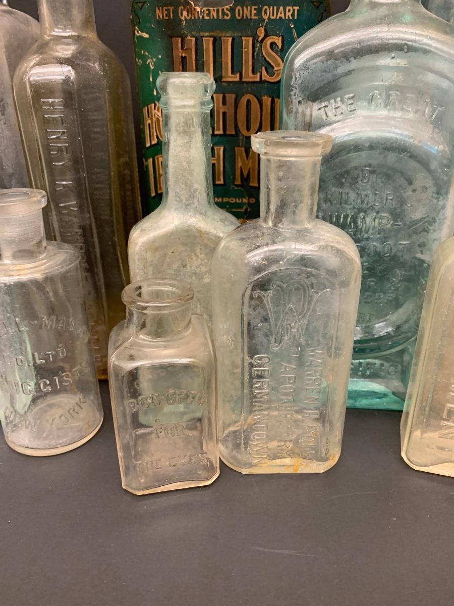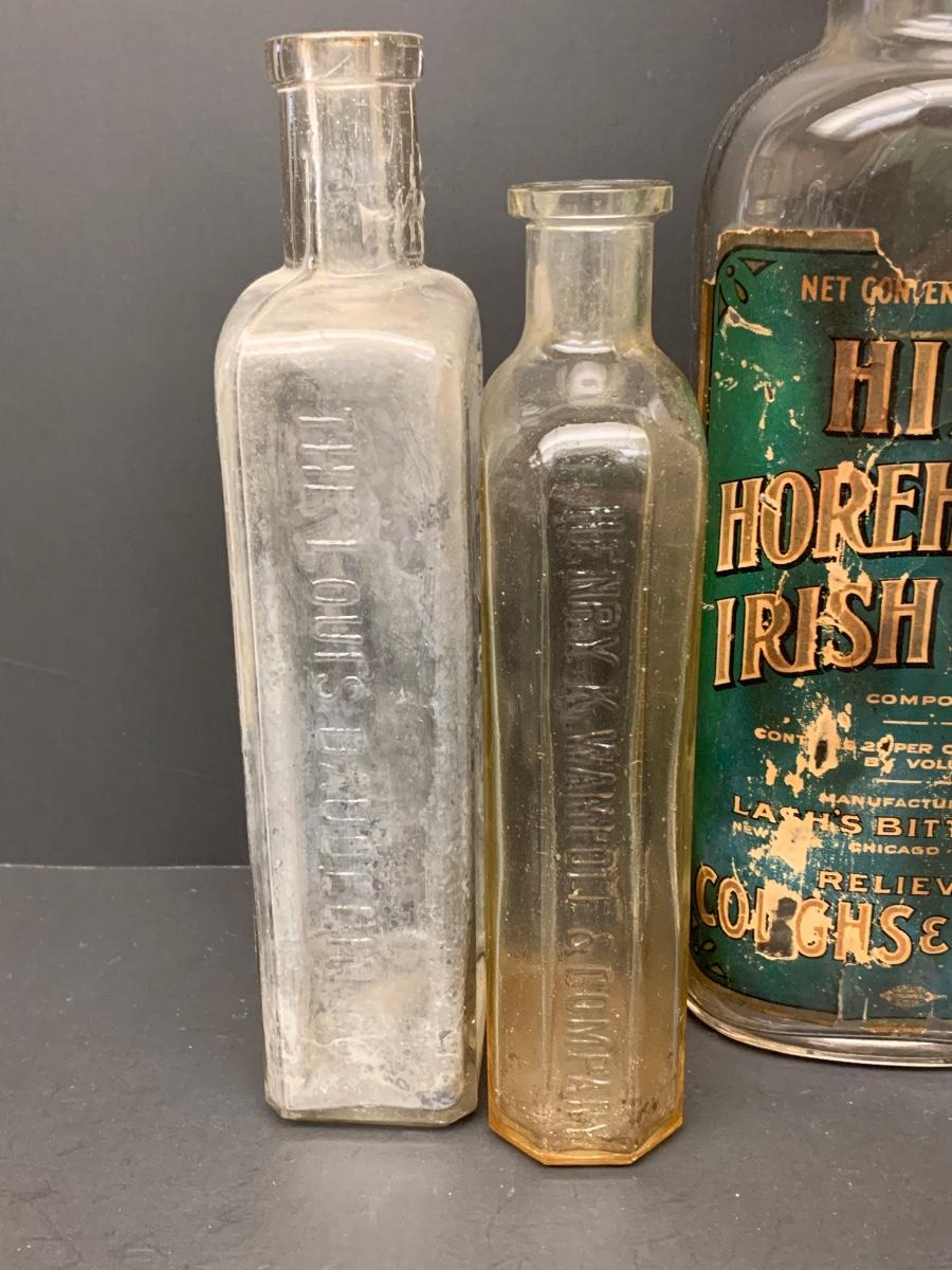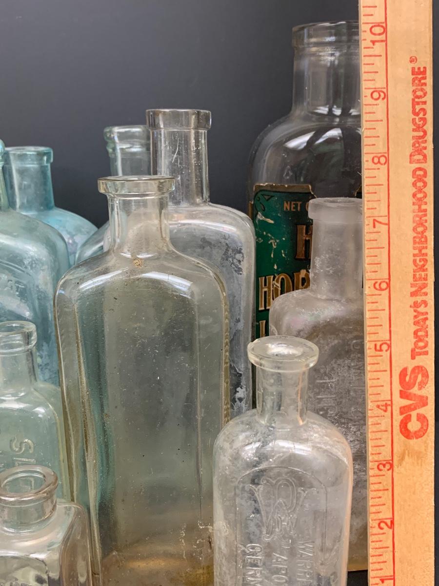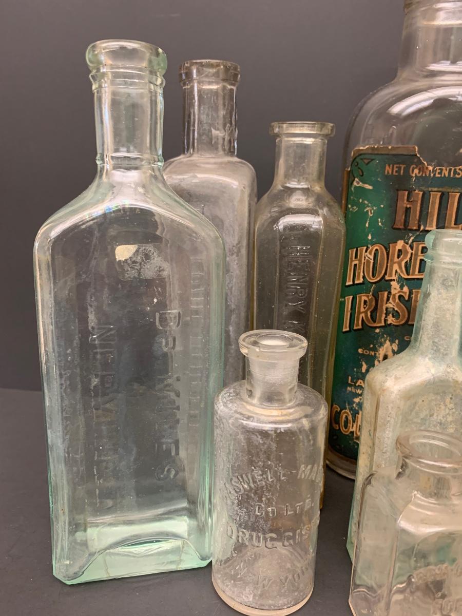 LOT 62R: Vintage & Unique Glass Bottles: Sloan's Liniment, Fellows Syrup, Hill's Horehound Irish Moss & More.