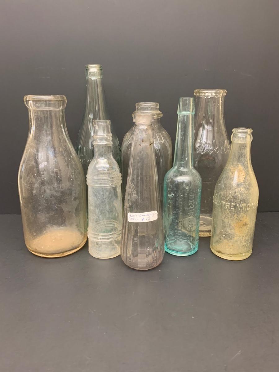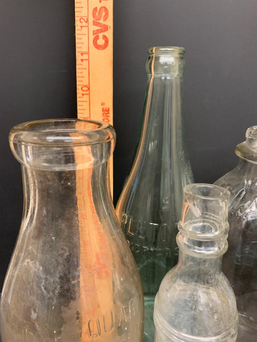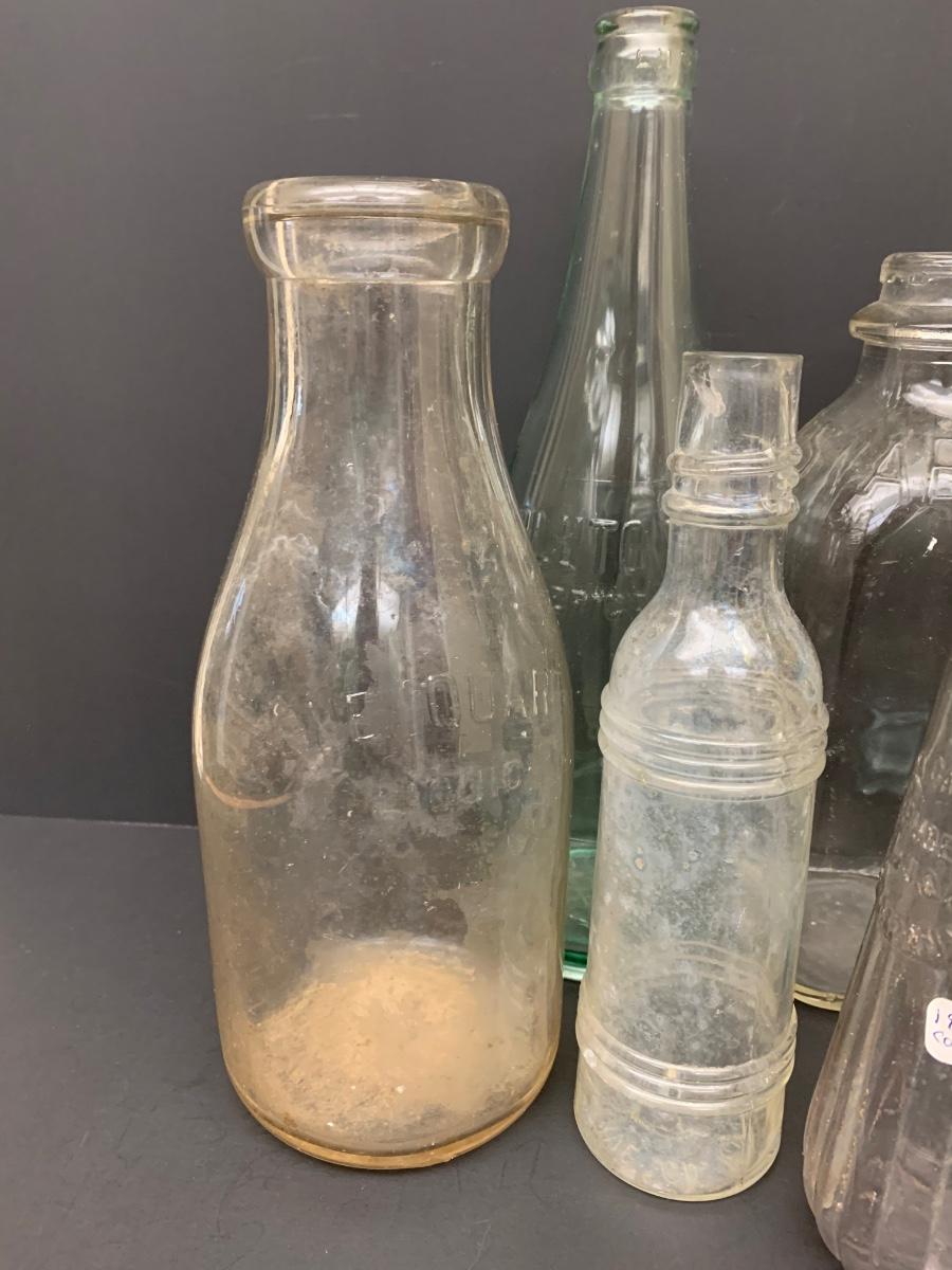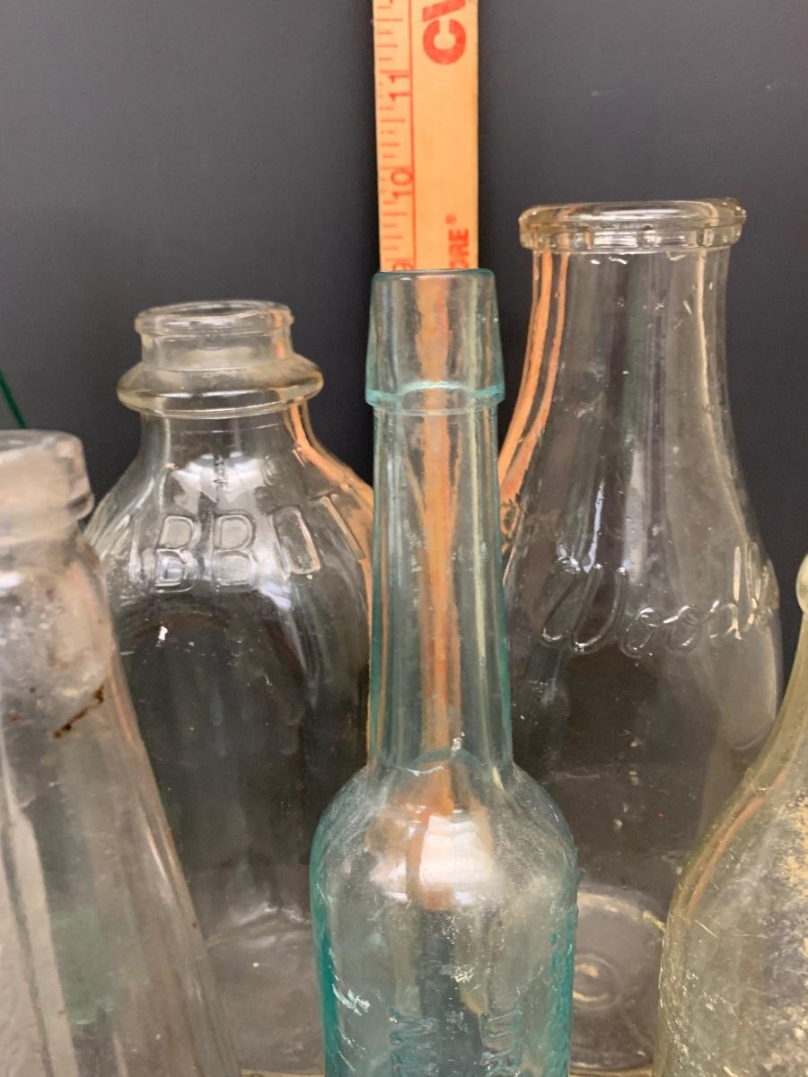 Collection of vintage bottles with raised letters and/or with no markings