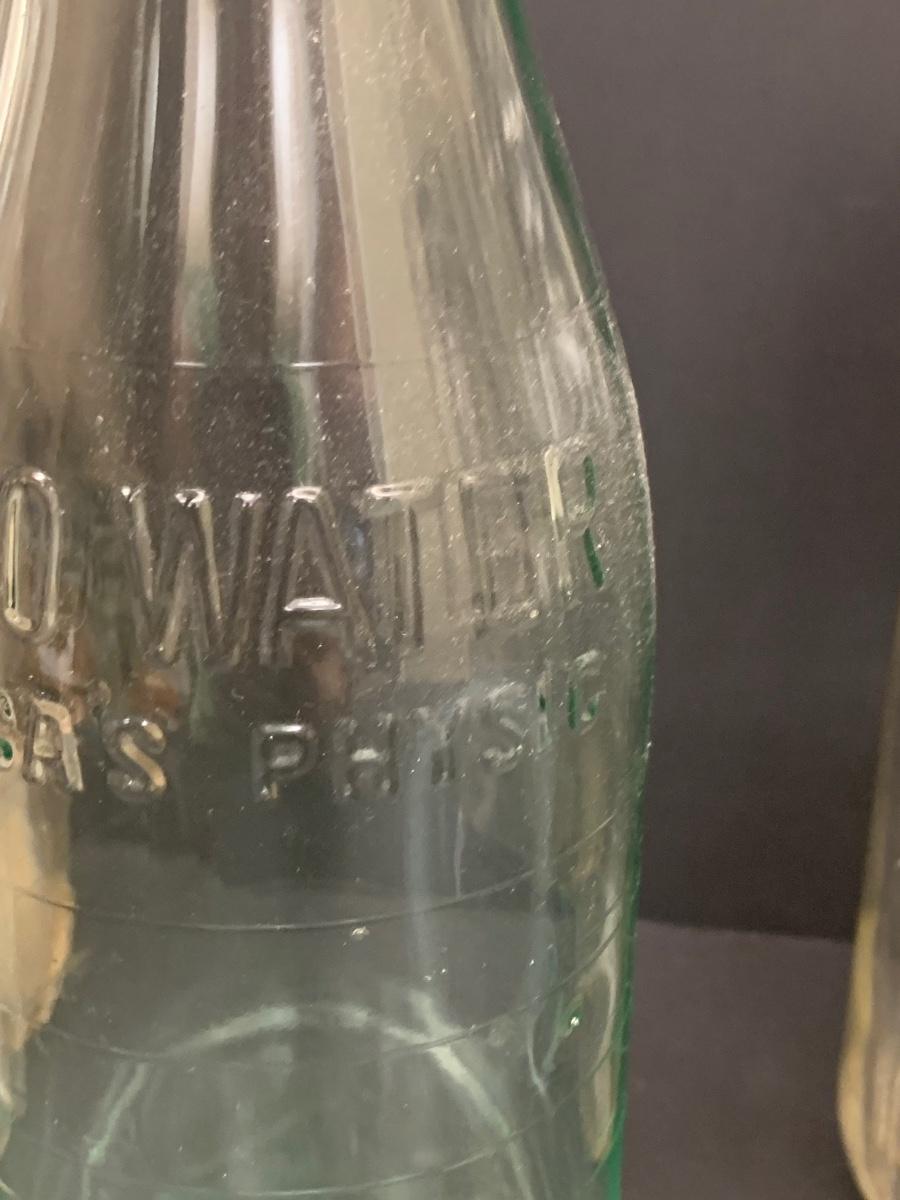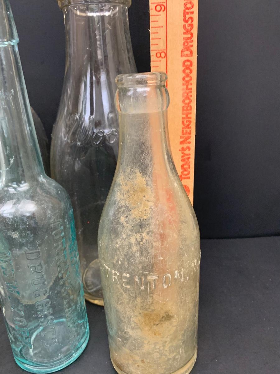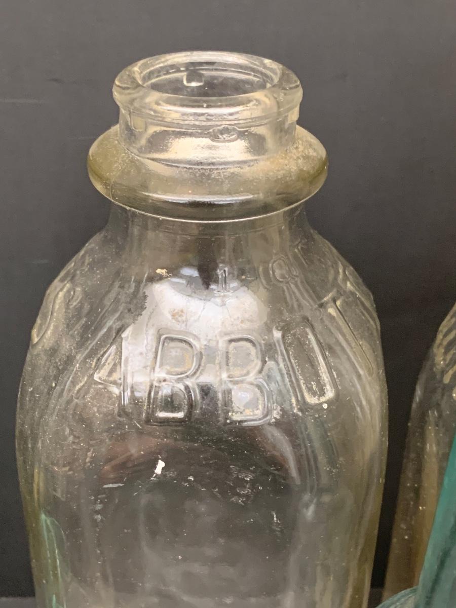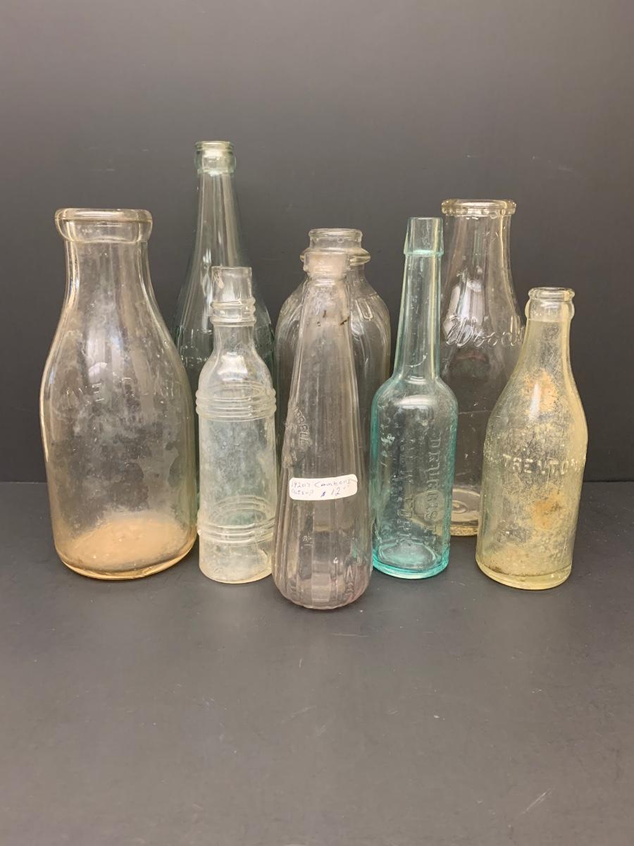 Collection of vintage bottles with raised letters and/or with no markings