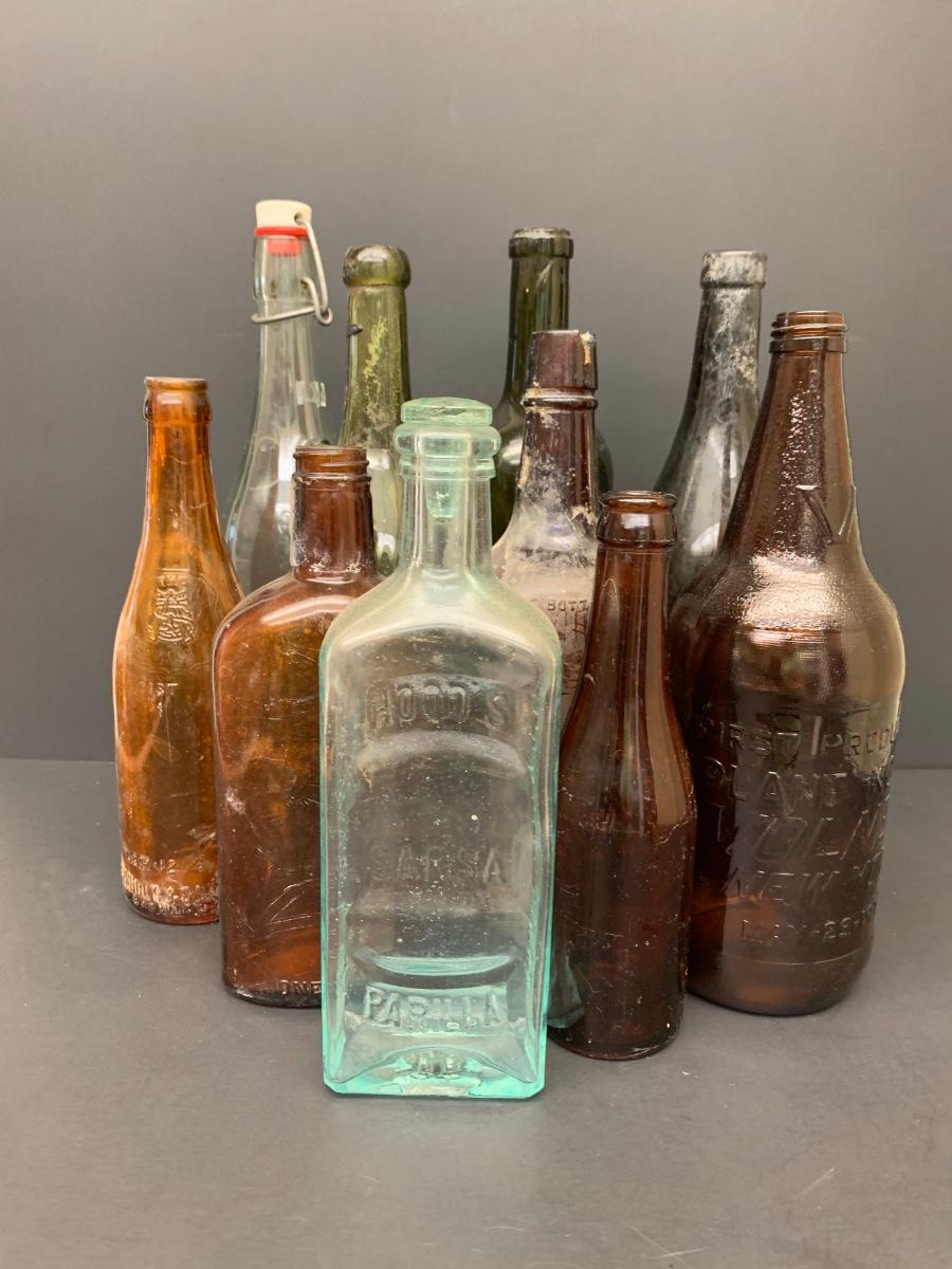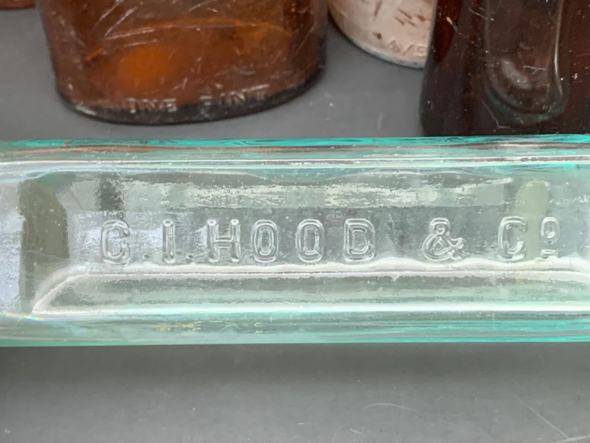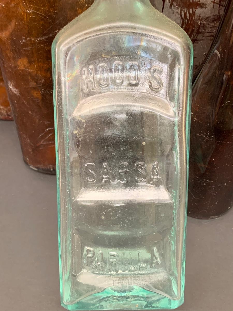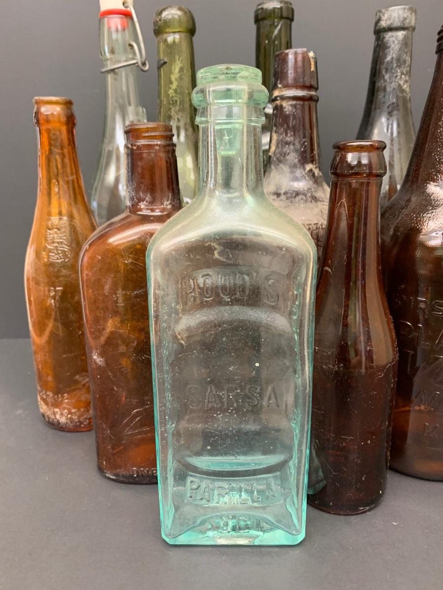 LOT 67R: Vintage & Unique Glass Bottles: Hoods Sarsaparilla w/Glass Stopper and More